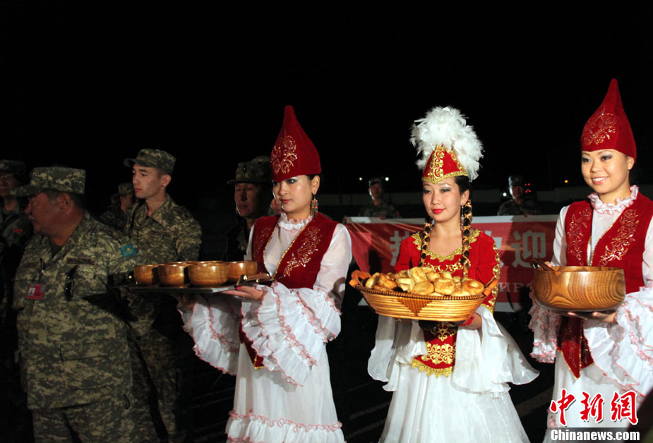 9月13日,“和平使命-2010”上海合作組織聯(lián)合反恐軍事演習(xí)在哈薩克斯坦馬特布拉克訓(xùn)練場(chǎng)舉行盛大的開(kāi)訓(xùn)儀式,標(biāo)志著這次聯(lián)合軍演由戰(zhàn)役磋商階段正式轉(zhuǎn)入戰(zhàn)役準(zhǔn)備階段。隨后,哈、中、吉、俄、塔五方參演部隊(duì)依次舉行分列式,圖為中方參演部隊(duì)邁著矯健的步伐從開(kāi)訓(xùn)儀式主席臺(tái)前列隊(duì)走過(guò),接受檢閱。中新社記者 孫自法 攝