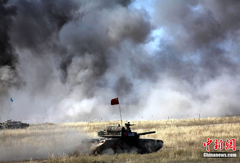 參加“和平使命-2010”上合組織聯(lián)合反恐軍事演習(xí)的中方參演裝備停放在哈薩克斯坦馬特布拉克訓(xùn)練場(chǎng)野戰(zhàn)兵營(yíng)。圖為99式坦克。孫彥新 攝 圖片來(lái)源:新華網(wǎng)
