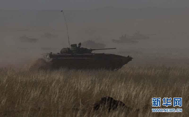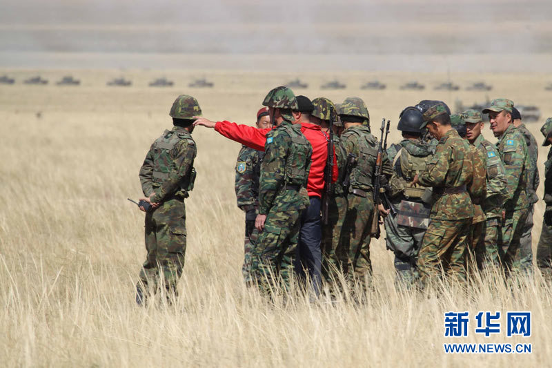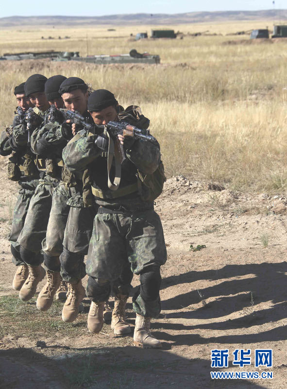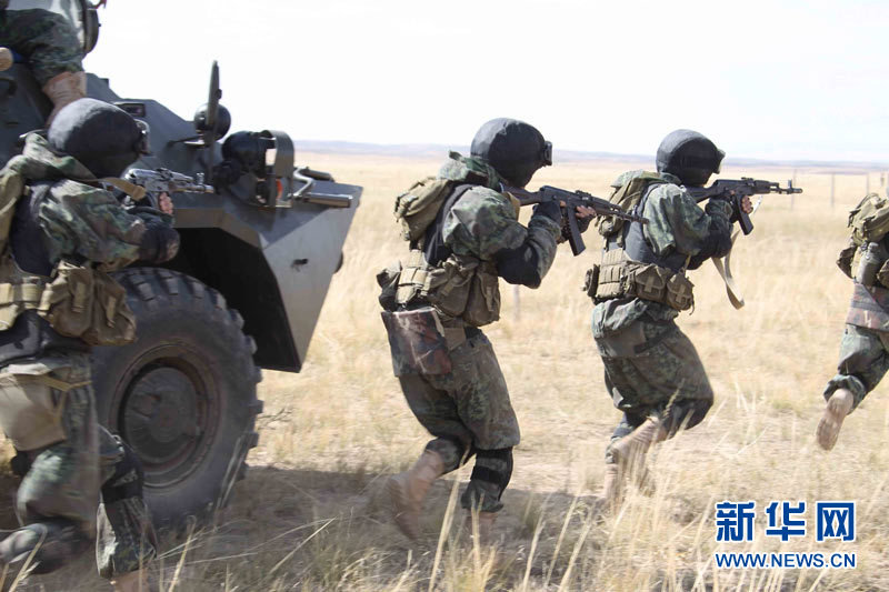 9月15日,參加上海合作組織成員國武裝力量聯(lián)合反恐軍事演習(xí)的哈薩克斯坦、中國、吉爾吉斯斯坦、俄羅斯、塔吉克斯坦五國參演部隊成功舉行第二次實兵合練。王建民 攝 圖片來源:新華網(wǎng)