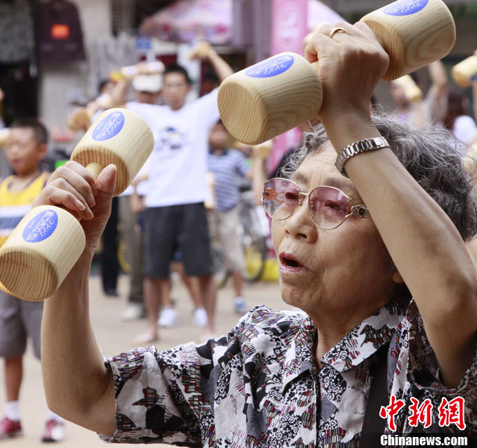 日本民眾集體做啞鈴操迎接敬老日