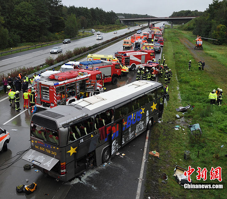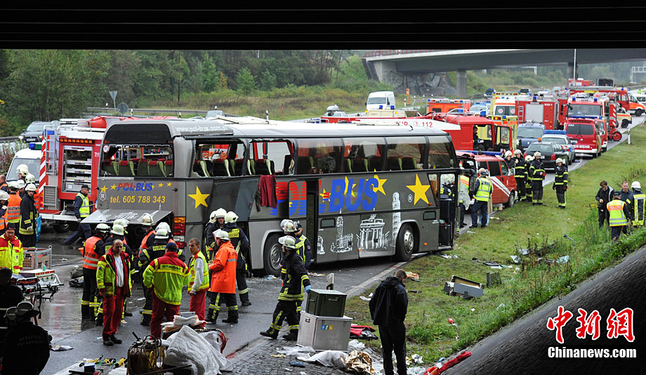 當(dāng)?shù)貢r間9月26日,德國一輛旅游大巴在柏林南部朗斯多夫的高速公路上發(fā)生嚴重交通事故,造成至少10人死亡,30人受傷。