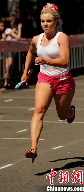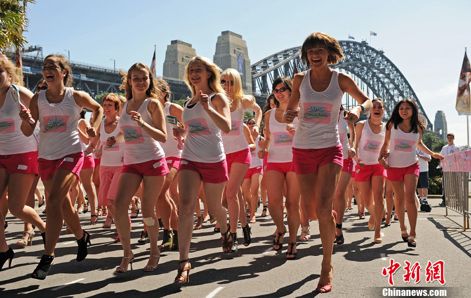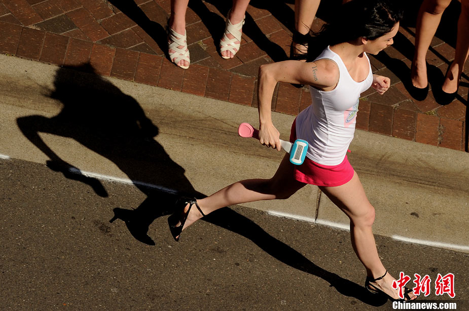 9月28日,澳大利亞悉尼舉行了一場(chǎng)“高跟鞋接力賽”。參賽選手們將穿至少3英寸高跟鞋,進(jìn)行4×100米接力賽跑,這項(xiàng)活動(dòng)是為了幫助乳癌患者治療募集基金。