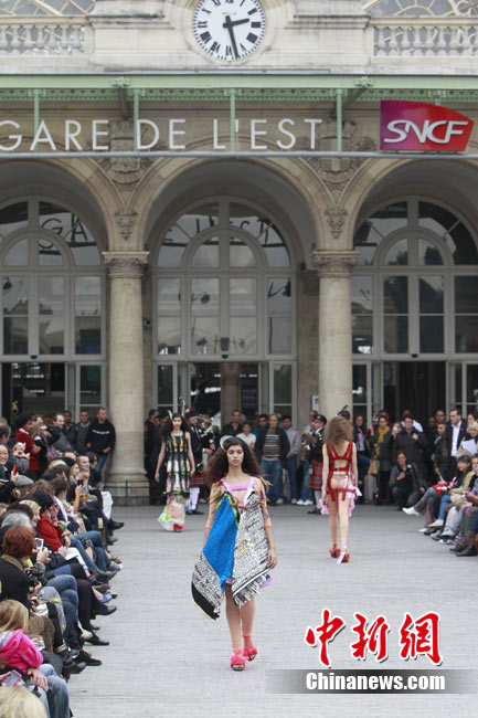 9月28日,法國巴黎,眾靚模在巴黎火車站(Gare de L’est )上演了一場(chǎng)另類走秀。