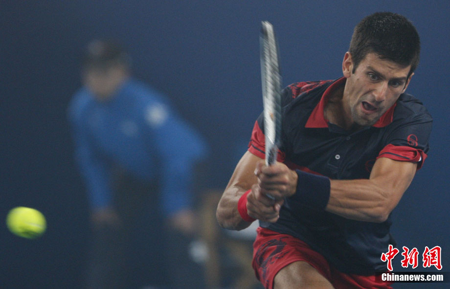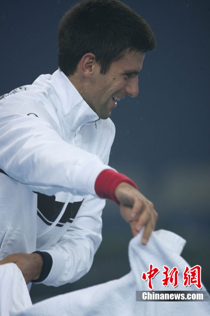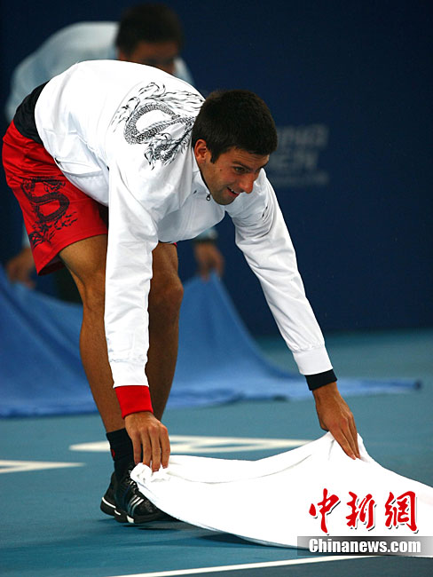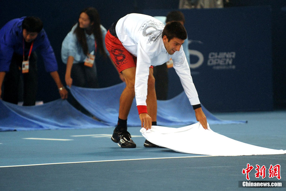 10月10日,總獎(jiǎng)金額為210萬(wàn)美元的ATP'500中網(wǎng)公開賽進(jìn)入最后一天的爭(zhēng)奪,衛(wèi)冕冠軍德約科維奇與西班牙名將費(fèi)雷爾之間的男單決賽因雨中斷,比賽暫停時(shí)小德以3-1的比分暫時(shí)領(lǐng)先。中新社記者 富田 攝