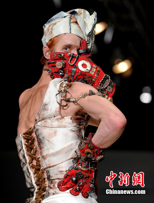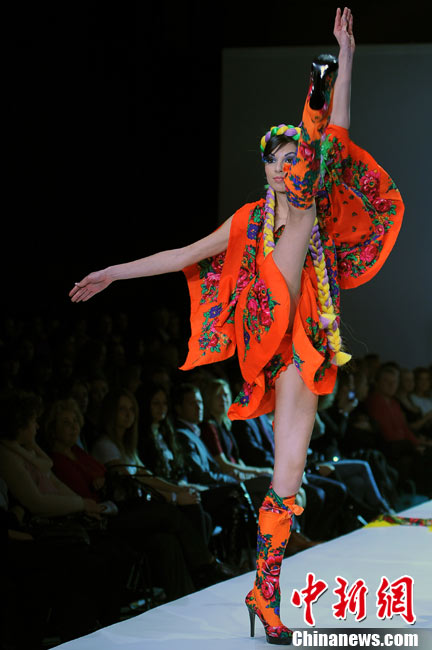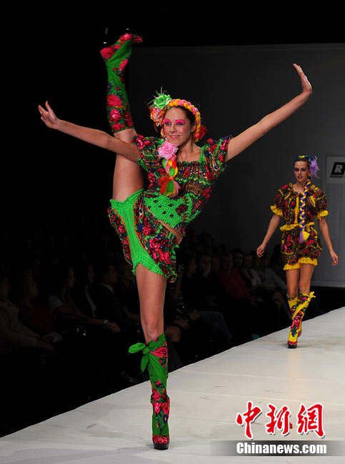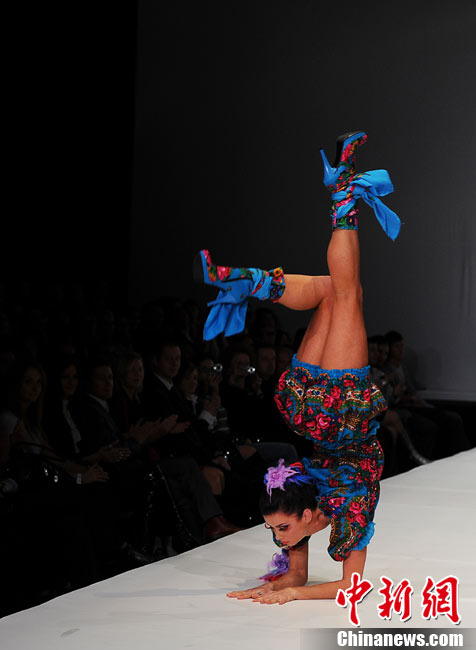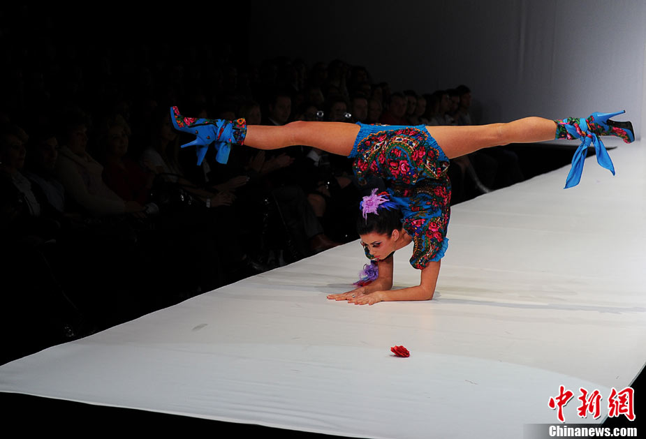 10月18日,莫斯科,在2011俄羅斯春夏時(shí)裝周上舉行了一場別開生面的時(shí)裝秀,眾多靚模用一些高難度動(dòng)作展示潮流服飾。