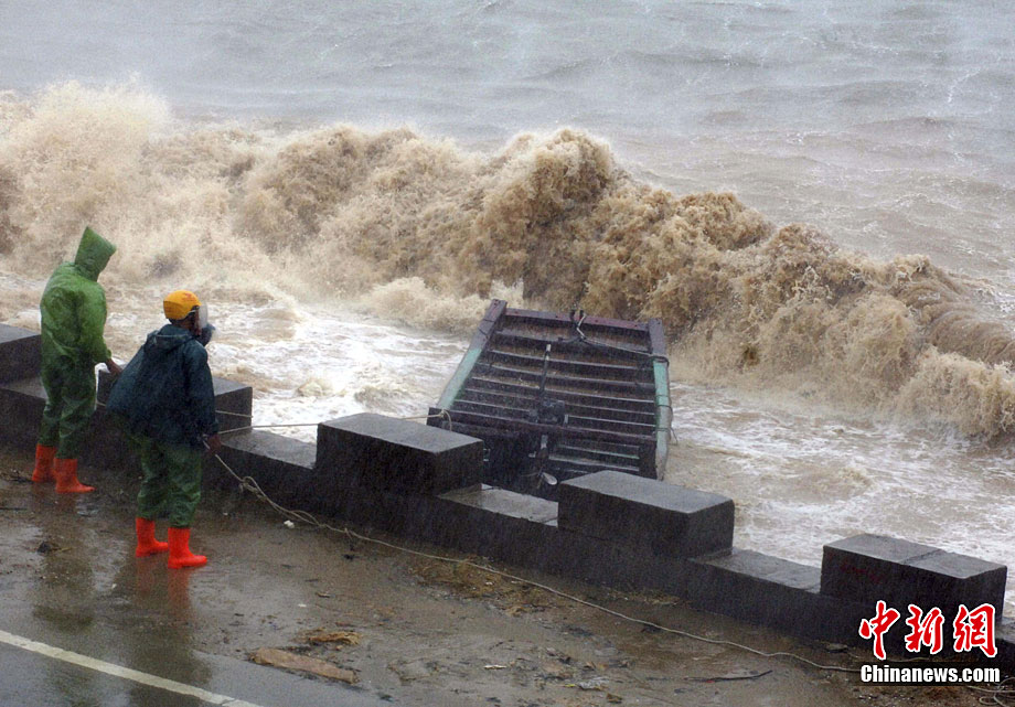 10月23日12時55分,今年第13號臺風(fēng)“鲇魚”在福建省漳浦縣六鰲鎮(zhèn)登陸,登陸時近中心最大風(fēng)力13級(風(fēng)速38米/秒),未來將向北偏西方向移動,強(qiáng)度逐漸減弱。圖片來源:CFP視覺中國 林良標(biāo) 攝