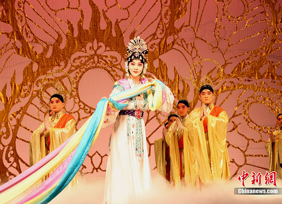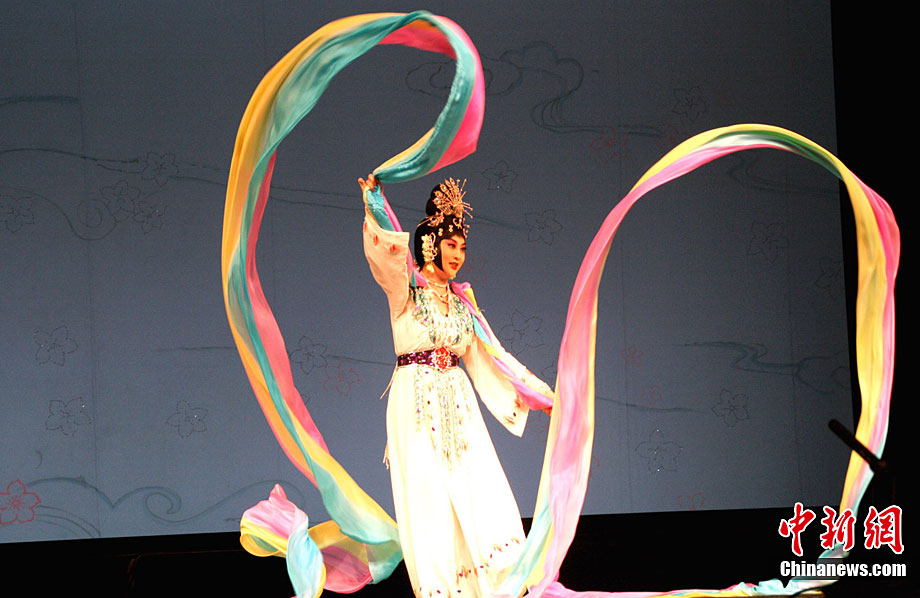 10月22日至11月9日,泰州舉行梅蘭芳藝術(shù)節(jié),旨在弘揚(yáng)優(yōu)秀傳統(tǒng)文化,振興京劇藝術(shù),擦亮泰州特色文化品牌,改善文化民生,提升城市形象,建設(shè)文化泰州。期間15項(xiàng)主要活動(dòng)精彩紛呈,有《貴妃醉酒》等國(guó)粹京劇名家名段,有《臘雷月》等耳熟能詳淮揚(yáng)小戲,有《飄逸的紅紗巾》等現(xiàn)代京劇經(jīng)典,也有“梅蘭春杯”戲曲票友大獎(jiǎng)賽、“百姓大舞臺(tái)”地方風(fēng)情文藝節(jié)目展演等群眾性演出,讓廣大戲迷和泰州市民盡享一系列精神文化盛宴。圖為梅葆玖弟子譚茗心獻(xiàn)藝,演出《天女散花》劇目。中新社記者 崔佳明 攝