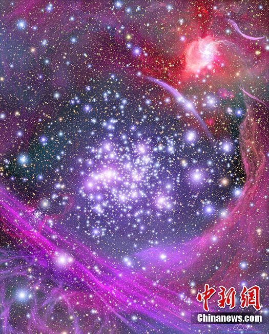 美國宇航局(NASA)近日公布了銀河系深處拱門星團的最新藝術(shù)效果圖。改圖根據(jù)哈勃太空望遠鏡和一些地面望遠鏡拍攝的圖像描繪而成。拱門星團存在于銀河系中心黑洞附近,包含有大約3萬個類似于太陽的恒星,而且該恒星團的密度在銀河系所有已知同類天體構(gòu)造中是最大的。據(jù)測算,Arches的直徑約為三光年,其內(nèi)部天體密度超過太陽系約一百萬倍。