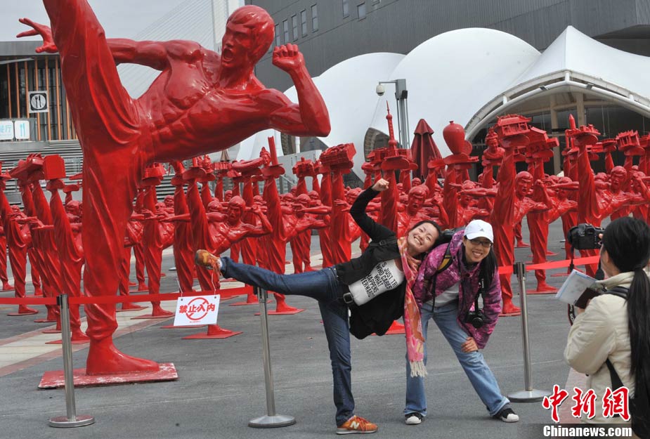 世博園內(nèi)游客頭戴“雞毛”奪人眼球