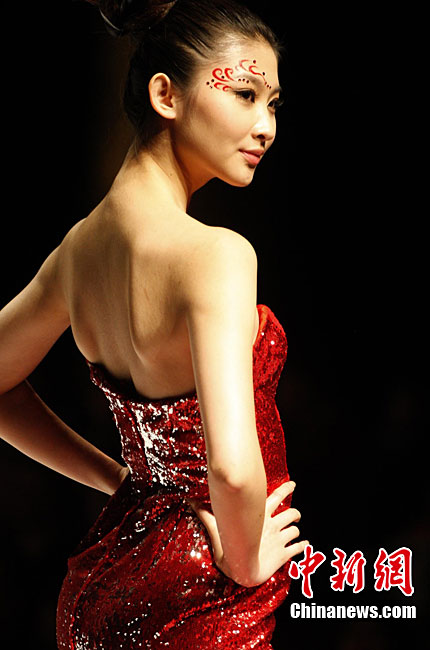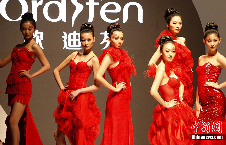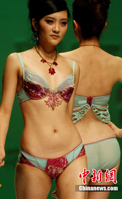 10月28日, 2010“歐迪芬杯”中國內(nèi)衣設(shè)計大賽在北京舉行,20位沖過初賽、復(fù)賽層層挑戰(zhàn)的選手們,聚集在中國內(nèi)衣設(shè)計的最高賽場,用創(chuàng)意與靈感展開激烈角逐。圖為模特展示“明門之秀”主題內(nèi)衣設(shè)計作品。中新社記者 錢興強(qiáng) 攝