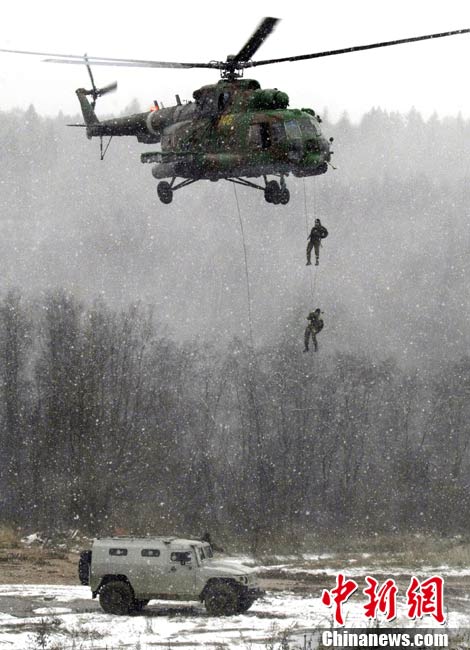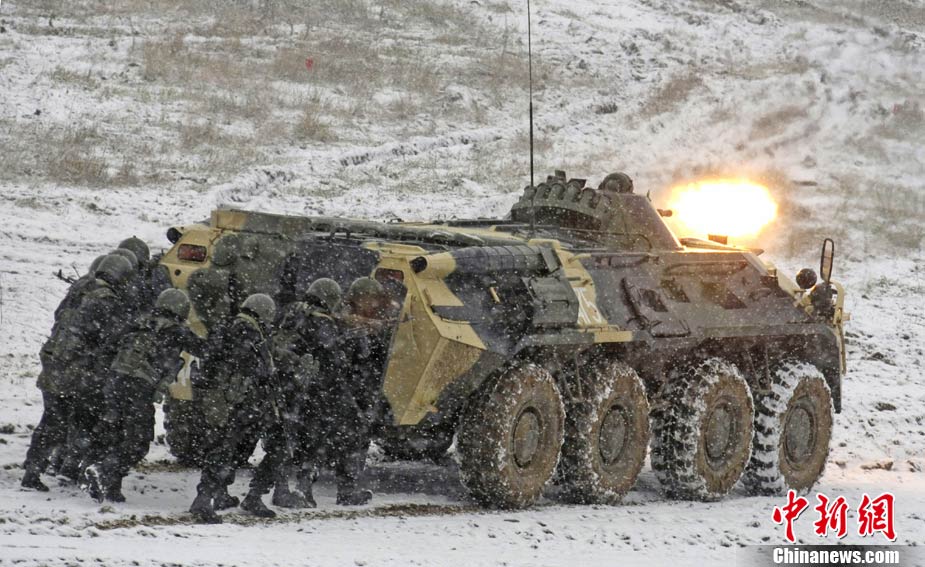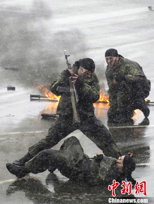 俄羅斯特警冒雪進行戰(zhàn)術(shù)示范演練