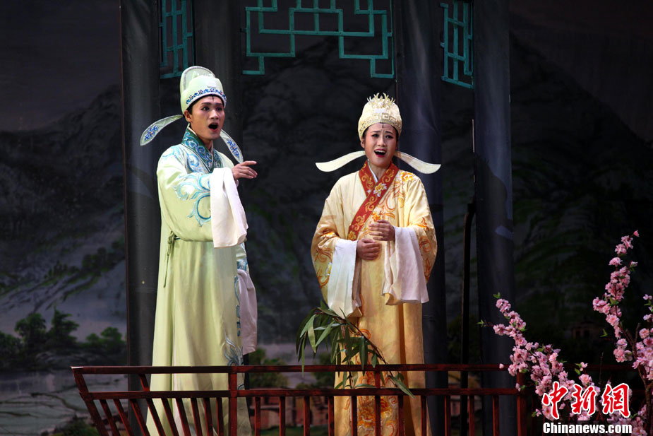 10月24日下午,朝鮮平壤大劇場上演其新排演的歌劇《梁山伯與祝英臺(tái)》。 中新社記者 孫自法 攝