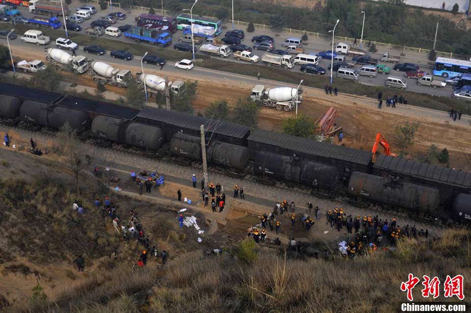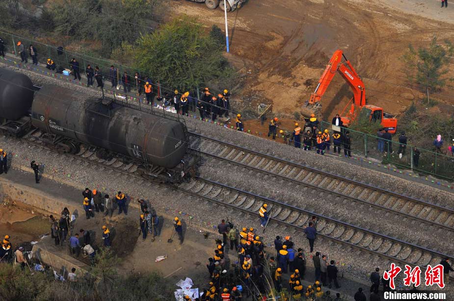 10月30日早晨,蘭新鐵路線遭水害遇險情,蘭新線K8+500米處南側山上,有廢水從山體沖下,將蘭新線上下行路基沖穿,嚴重危及行車安全。根據(jù)鐵路部門的測量,上行路基一側被沖塌形成了50立方米的坑,下行路基一側沖塌形成的坑有24立方米。蘭州鐵路局等組織7臺大型機械,共有700多人投入搶險。經(jīng)全力奮戰(zhàn),11時整,蘭新線下行線路開通;11時15分,蘭新線上行線路開通。楊艷敏 攝