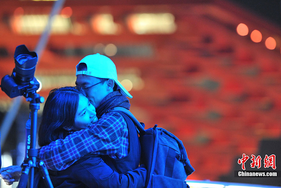 10月30日,上海世博會(huì)閉幕前夜,一對(duì)年青戀人深夜擁吻在世博園中國(guó)館前,沉浸于美好夜色里不忍離去。中新社記者 賈國(guó)榮 攝