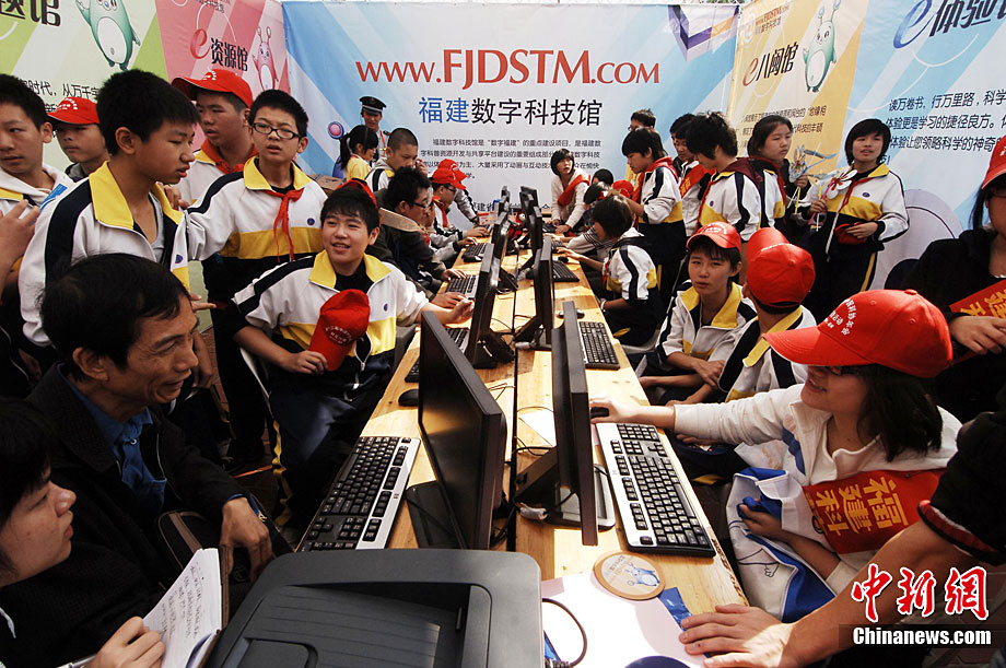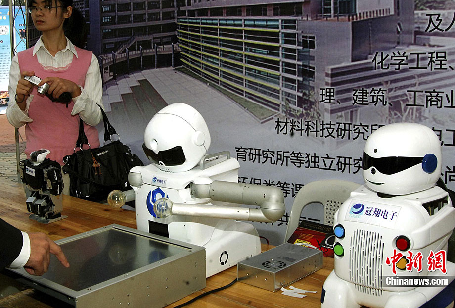 11月2日,福州科普愛好者與來自臺灣的機(jī)器人下棋。當(dāng)日,海峽兩岸科普嘉年華活動(dòng)在福州舉行,30多位臺灣科普專家攜15項(xiàng)臺灣科技成果到場,與福州民眾一起互動(dòng)。中新社記者 王東明 攝
