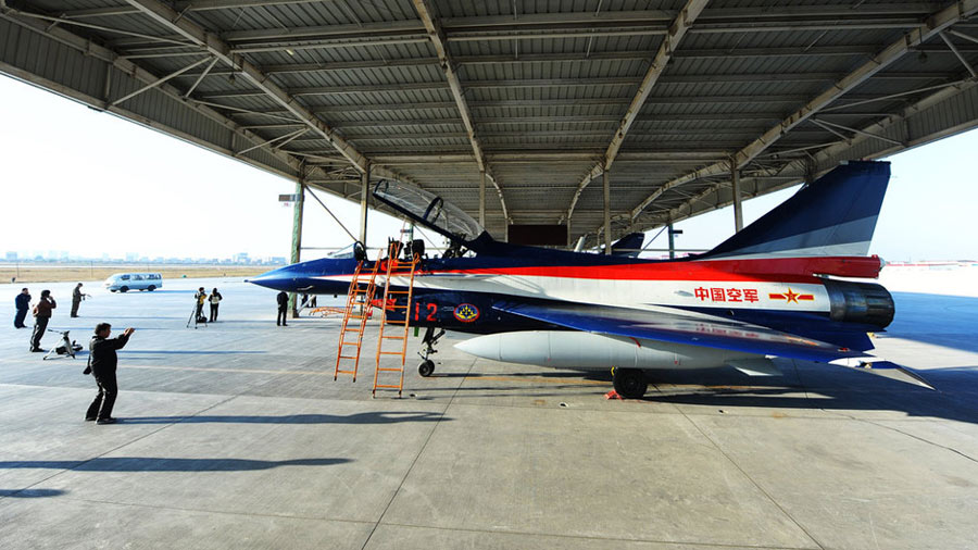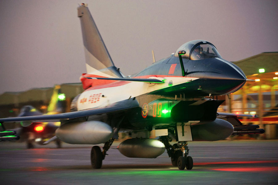 11月初,中國空軍八一飛行表演隊新涂裝的殲10飛機雙機起飛。空軍八一飛行表演隊7架殲—10戰(zhàn)機近日將飛赴珠海,參加11月16日至21日舉行的第8屆中國國際航空航天博覽會(珠海航展)。這是表演隊換裝殲—10戰(zhàn)機后,首次以新涂裝向世人正式亮相。空軍還將派出殲—8F、殲轟—7A、轟—6H、空警—200、直—8KA、直—9WA等7型飛機,參加這次國際性綜合航展。中新社發(fā) 譚超 攝