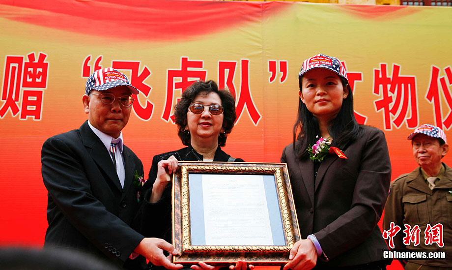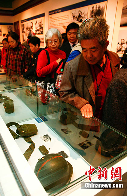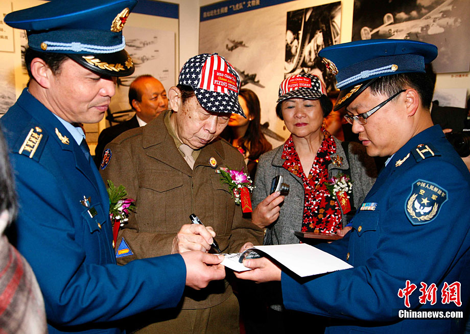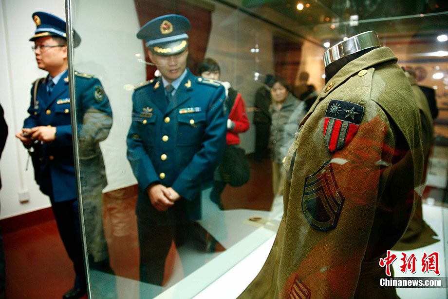 11月9日,由知名僑領(lǐng)陳燦培向昆明市捐贈(zèng)的1100件飛虎隊(duì)文物在云南陸軍講武堂展出。創(chuàng)立于上個(gè)世紀(jì)40年代的飛虎隊(duì),又稱中國(guó)空軍美國(guó)志愿援華航空隊(duì)。在抗日戰(zhàn)爭(zhēng)中對(duì)日作戰(zhàn),運(yùn)送物資,戰(zhàn)果累累。圖為參觀展覽的空軍官兵。中新社記者 劉冉陽(yáng) 攝