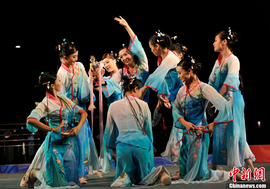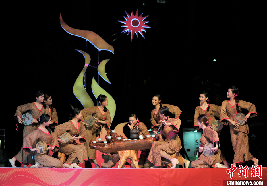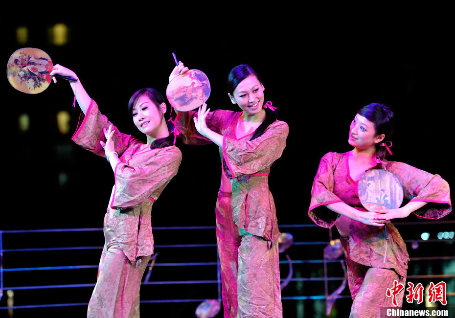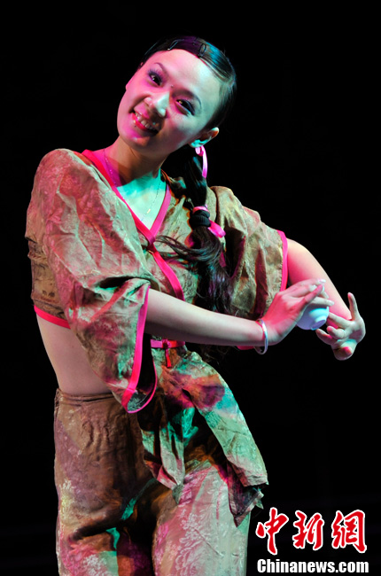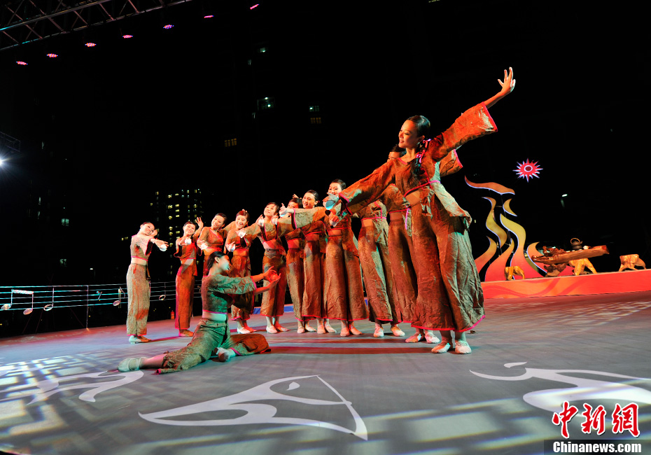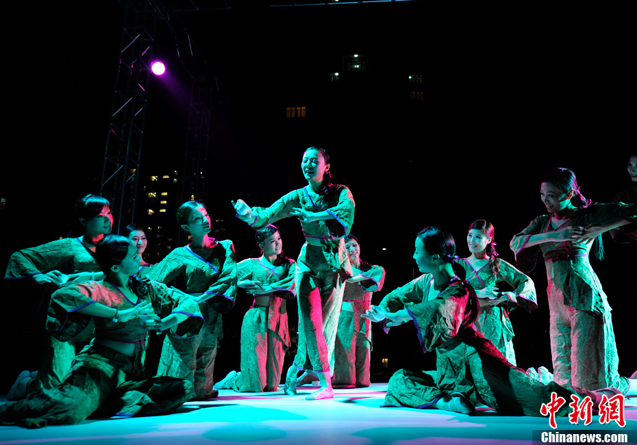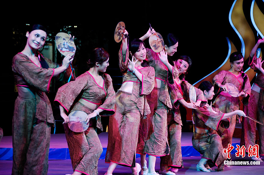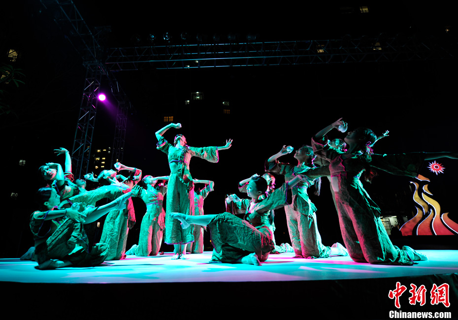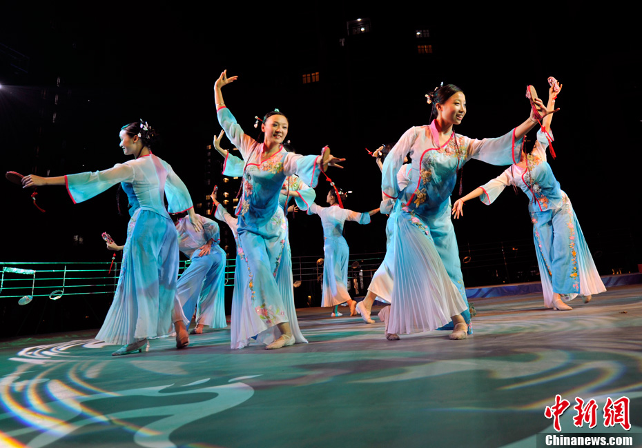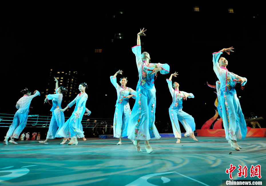 11月9日晚,廣州亞運(yùn)會媒體村上演各種精彩的文藝演出,獻(xiàn)給來自世界各地的記者。圖為廣州天河藝術(shù)團(tuán)在現(xiàn)場演出。中新網(wǎng)記者 金碩 攝
