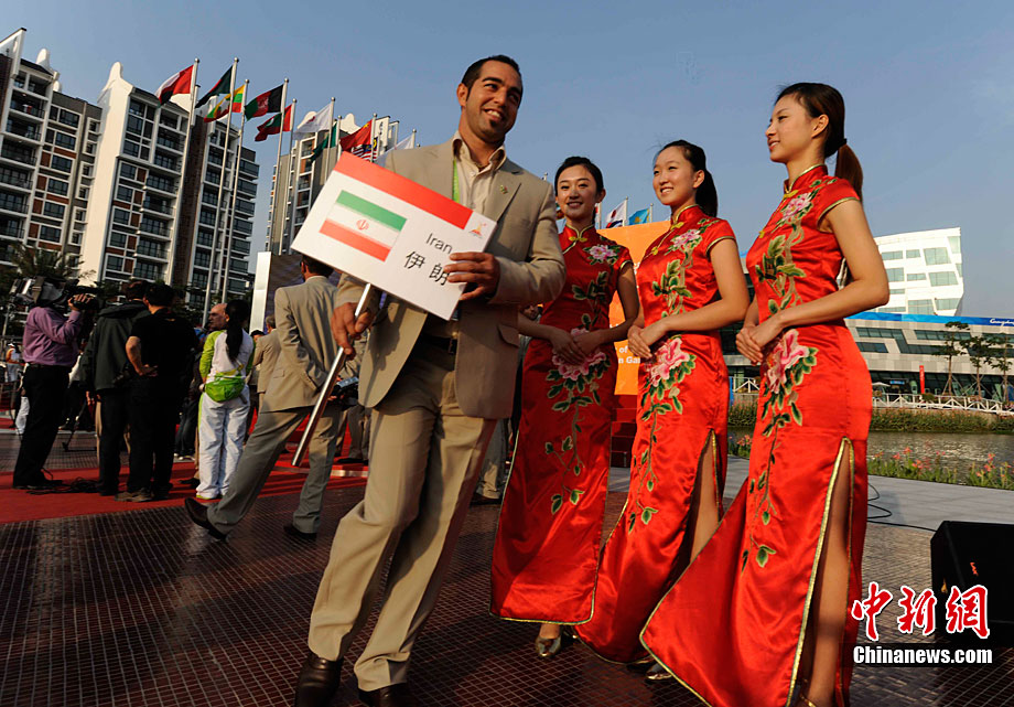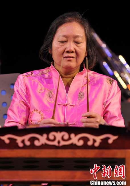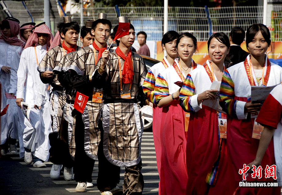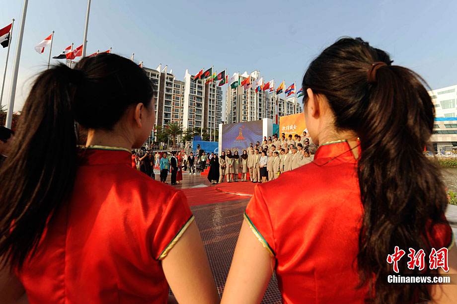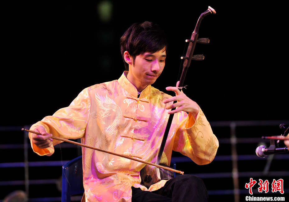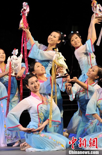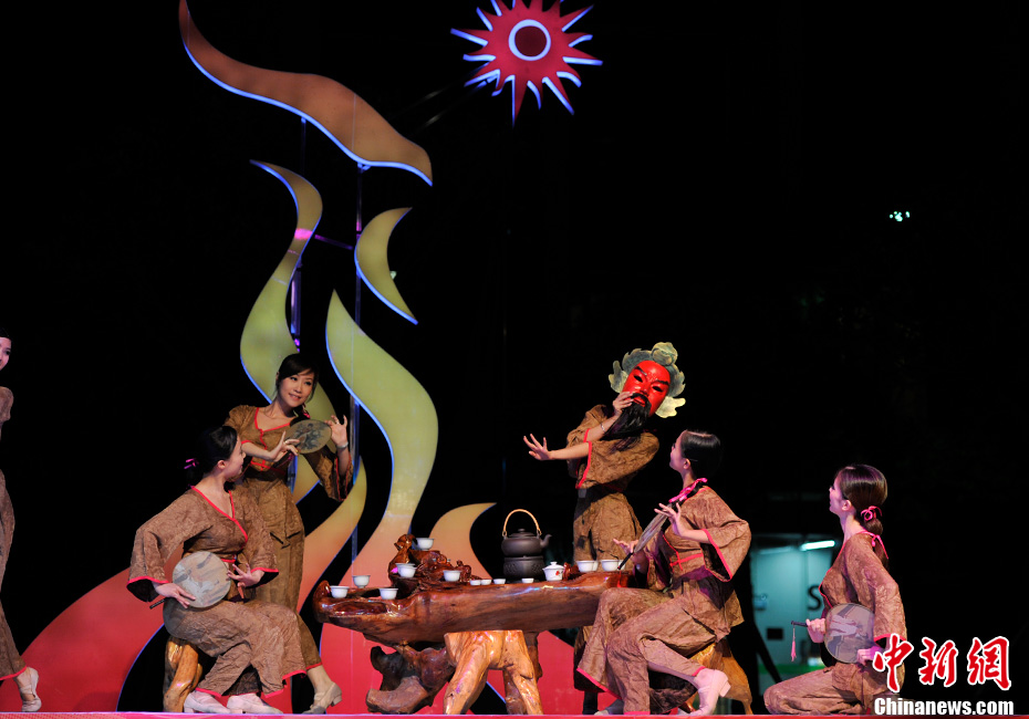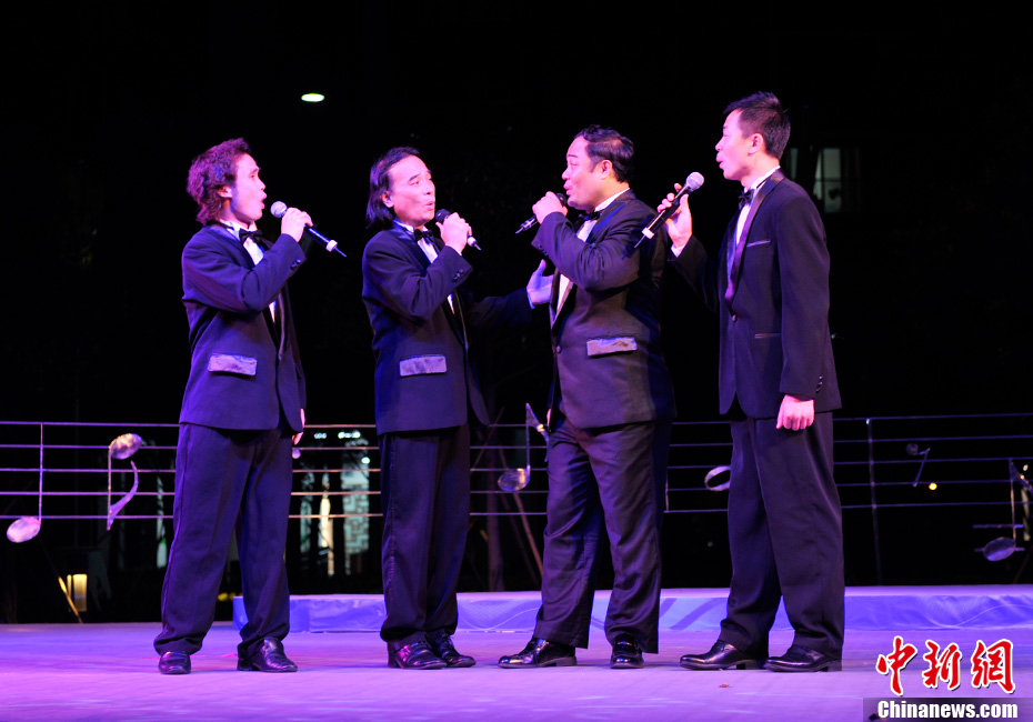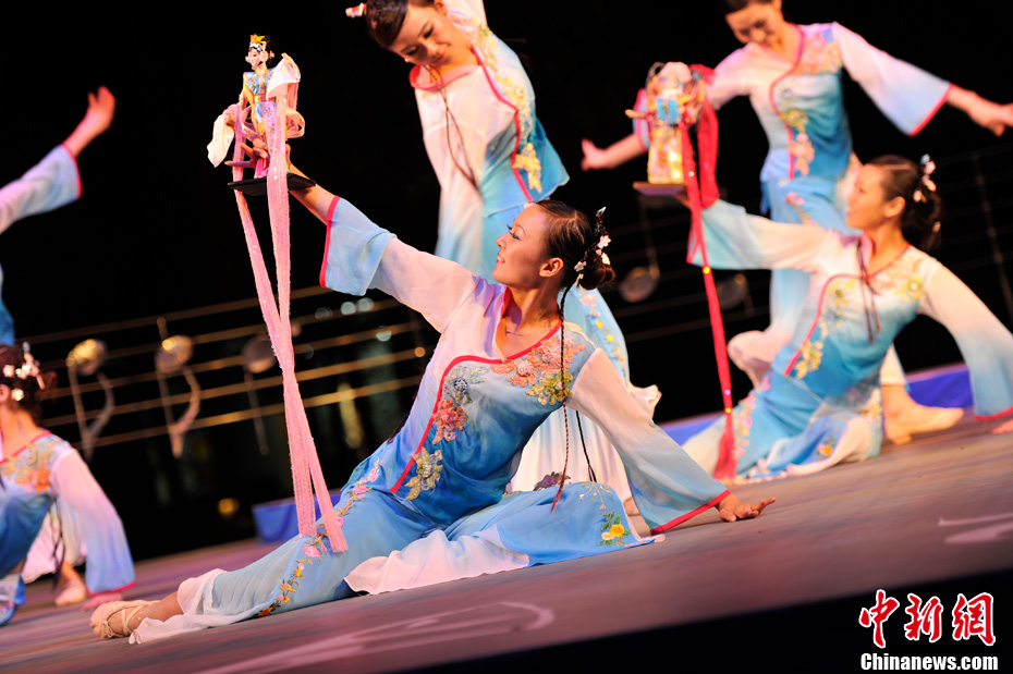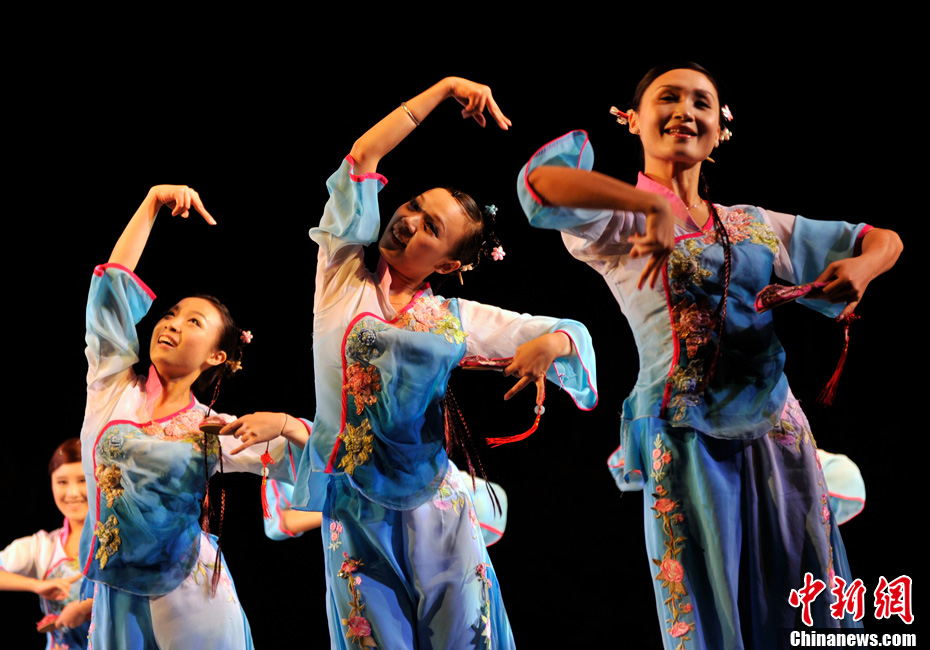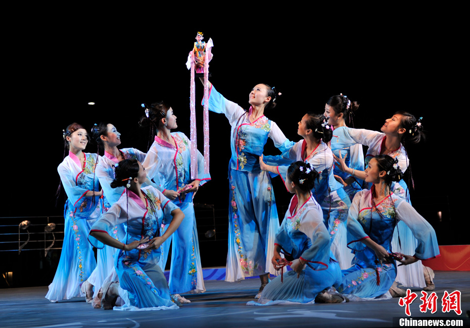 11月9日晚,廣州亞運(yùn)會媒體村上演各種精彩的文藝演出,獻(xiàn)給來自世界各地的記者。圖為廣州天河藝術(shù)團(tuán)在現(xiàn)場演出。中新網(wǎng)記者 金碩 攝