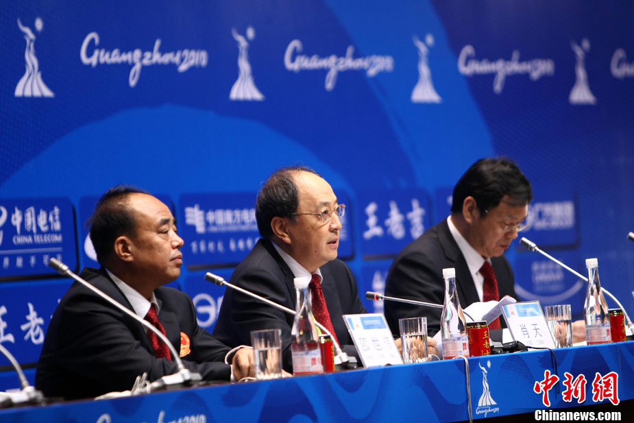 11月10日,中國(guó)體育代表團(tuán)新聞發(fā)布會(huì)在亞運(yùn)主媒體中心一號(hào)新聞廳召開。中國(guó)體育代表團(tuán)副團(tuán)長(zhǎng)肖天就目前媒體記者關(guān)注的問題做了回答。 中新社記者 杜洋攝
