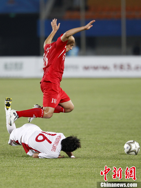 11月10日晚,廣州亞運(yùn)會(huì)男子足球小組賽A組第19場(chǎng)中國(guó)與吉爾吉斯斯坦的比賽在廣州天河體育場(chǎng)進(jìn)行,最終中國(guó)隊(duì)2:1戰(zhàn)勝吉爾吉斯斯坦隊(duì)。中新社記者 富田 攝