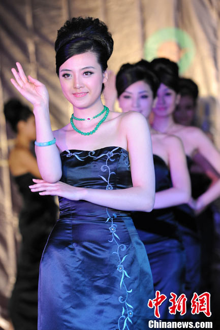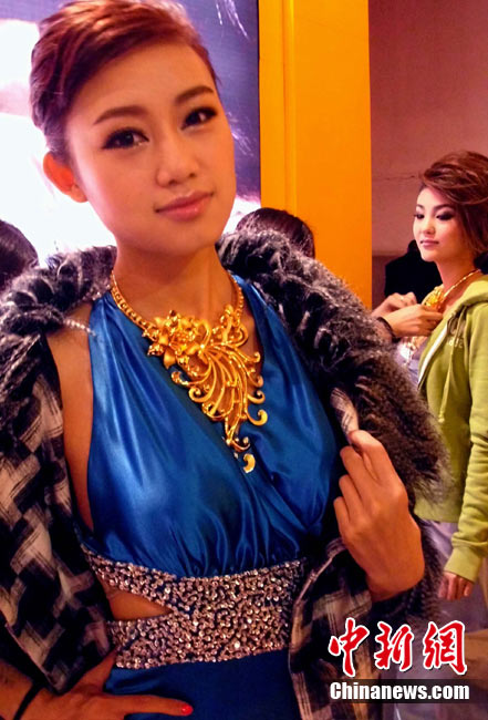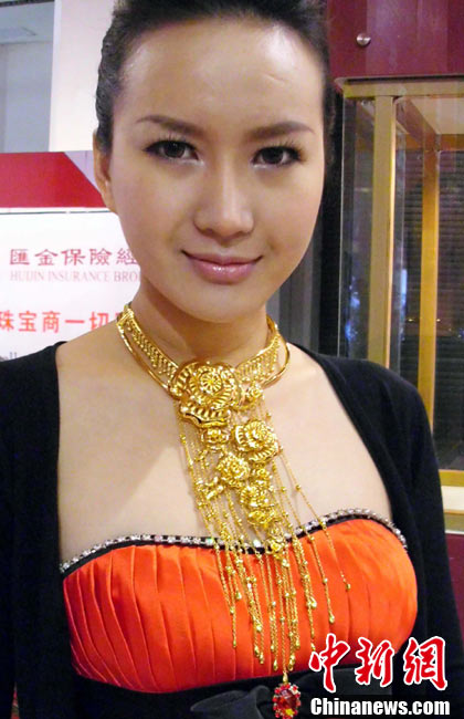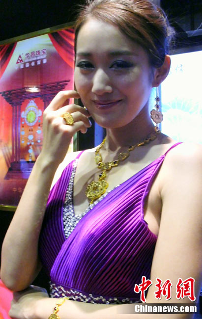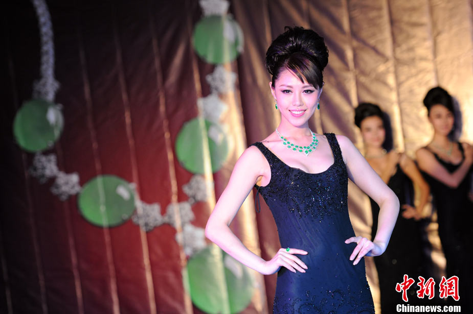 11月11日,2010中國(guó)國(guó)際珠寶展在北京中國(guó)國(guó)際展覽中心開(kāi)幕,本屆展會(huì)規(guī)模42000平方米,近2000個(gè)展位,有來(lái)自22個(gè)國(guó)家和地區(qū)的961家企業(yè)參展,展覽面積比去年同期擴(kuò)大了40%。圖為2010中國(guó)國(guó)際珠寶展上模特展示珠寶首飾。中新社記者 錢興強(qiáng) 攝