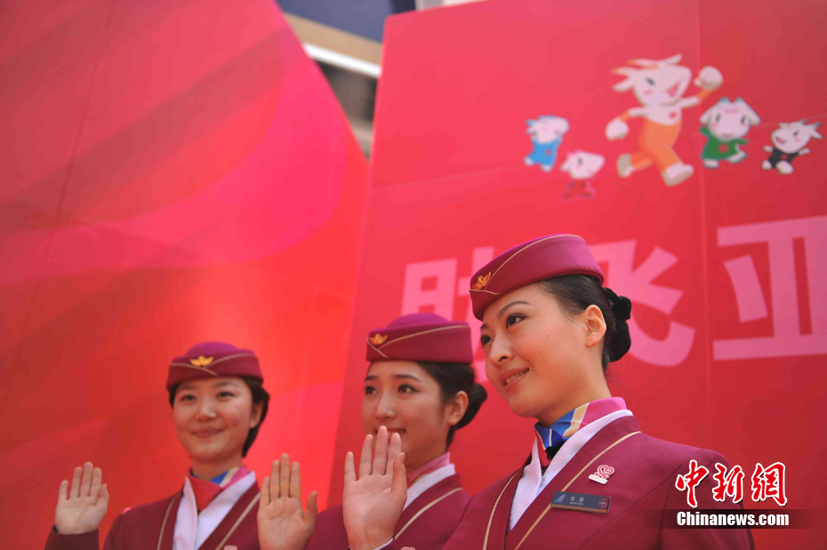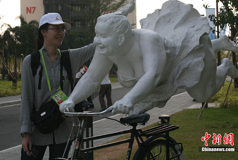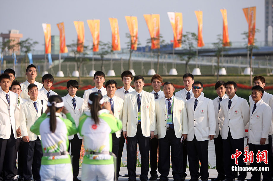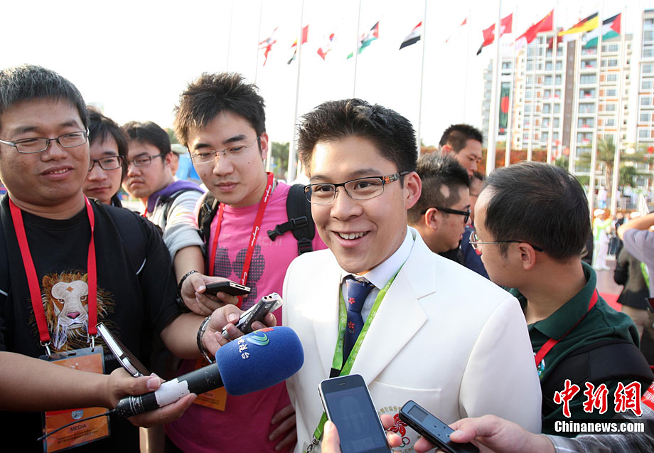 11月11日,來自華南理工大學學生樂團的一名女笛手在升旗儀式間隙“累倒在地”。連日來,這些學生樂手在亞運村為各國體育代表團舉行升旗儀式伴奏。中新社記者 湯彥俊 攝