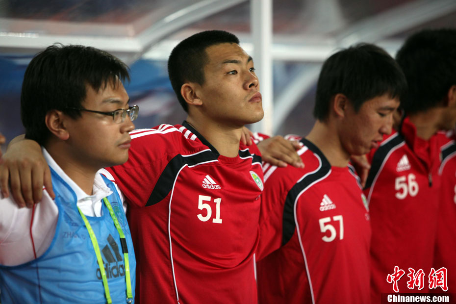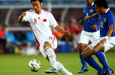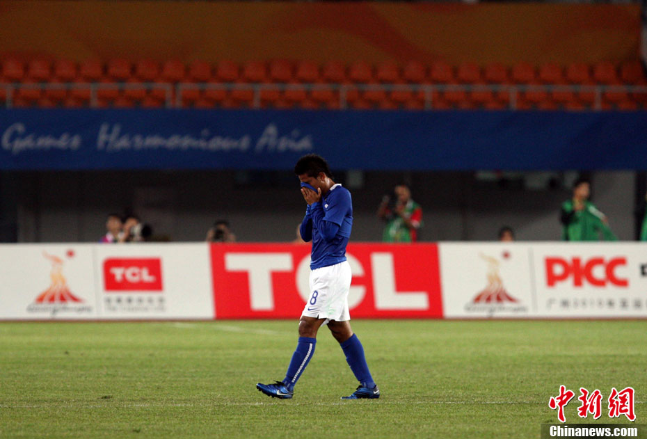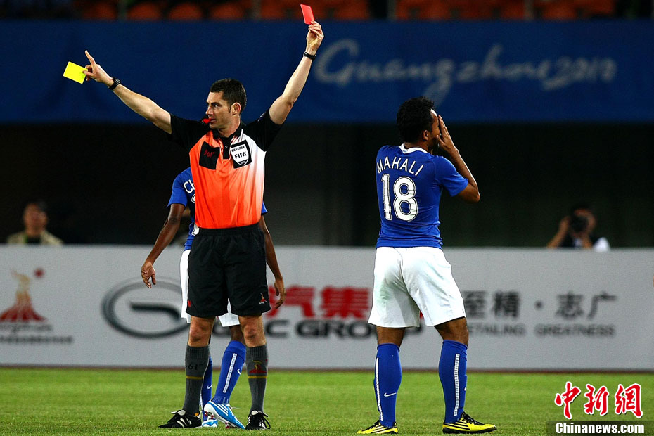 11月13日,在廣州天河體育場進(jìn)行的亞運(yùn)會男子足球小組賽A組第31場中國隊(duì)對陣馬來西亞的生死之戰(zhàn),中國隊(duì)以3比0戰(zhàn)勝馬來西亞隊(duì)小組出線。中新社記者 富田 攝