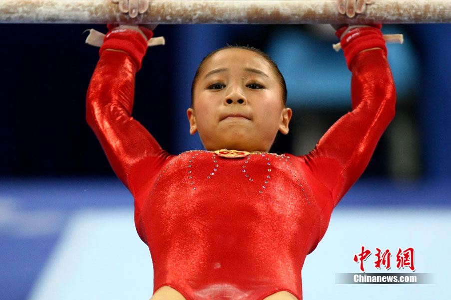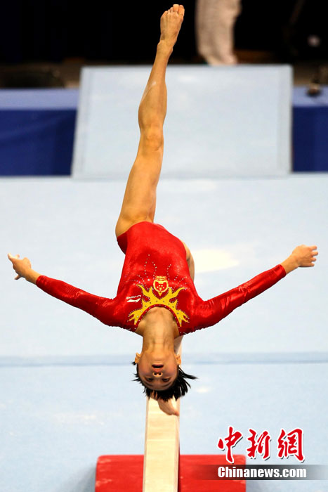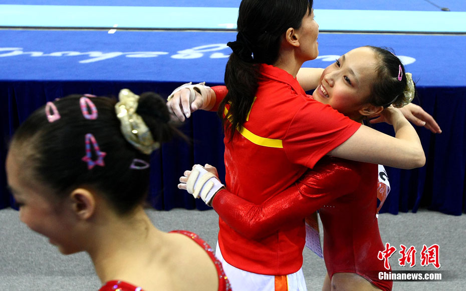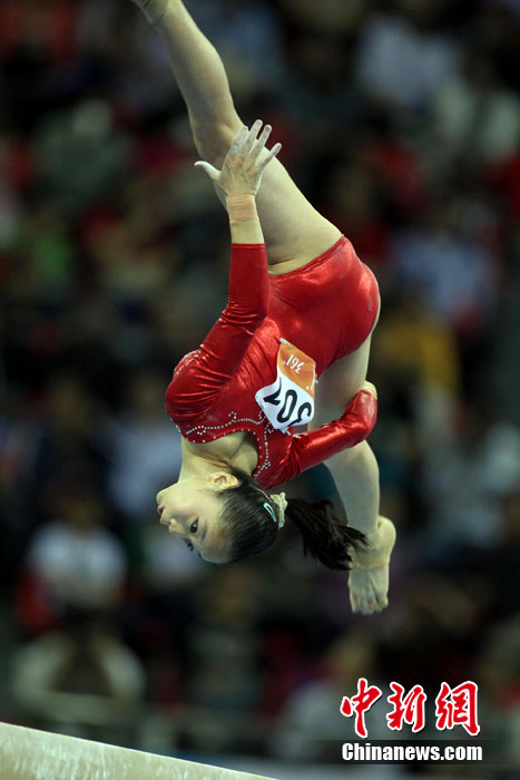 11月14日,在廣州亞運(yùn)會(huì)女子體操團(tuán)體決賽中,中國隊(duì)擊敗日本隊(duì)奪冠,實(shí)現(xiàn)了亞運(yùn)會(huì)的“十連冠”。中新社記者 富田 攝
