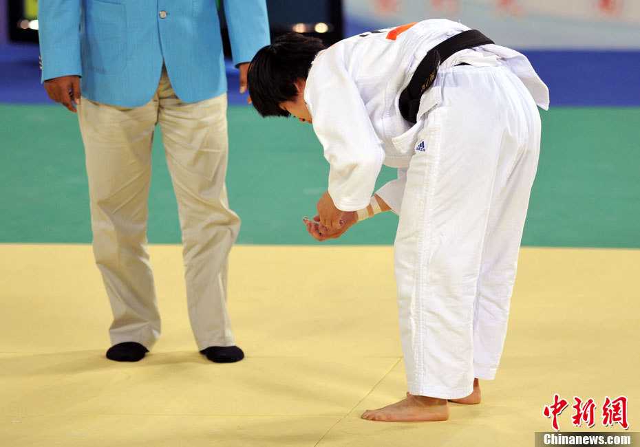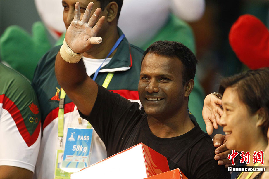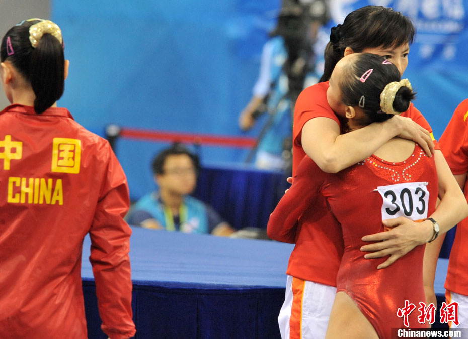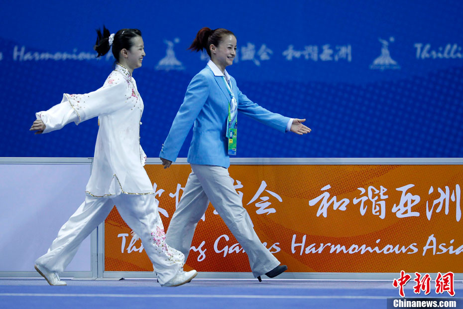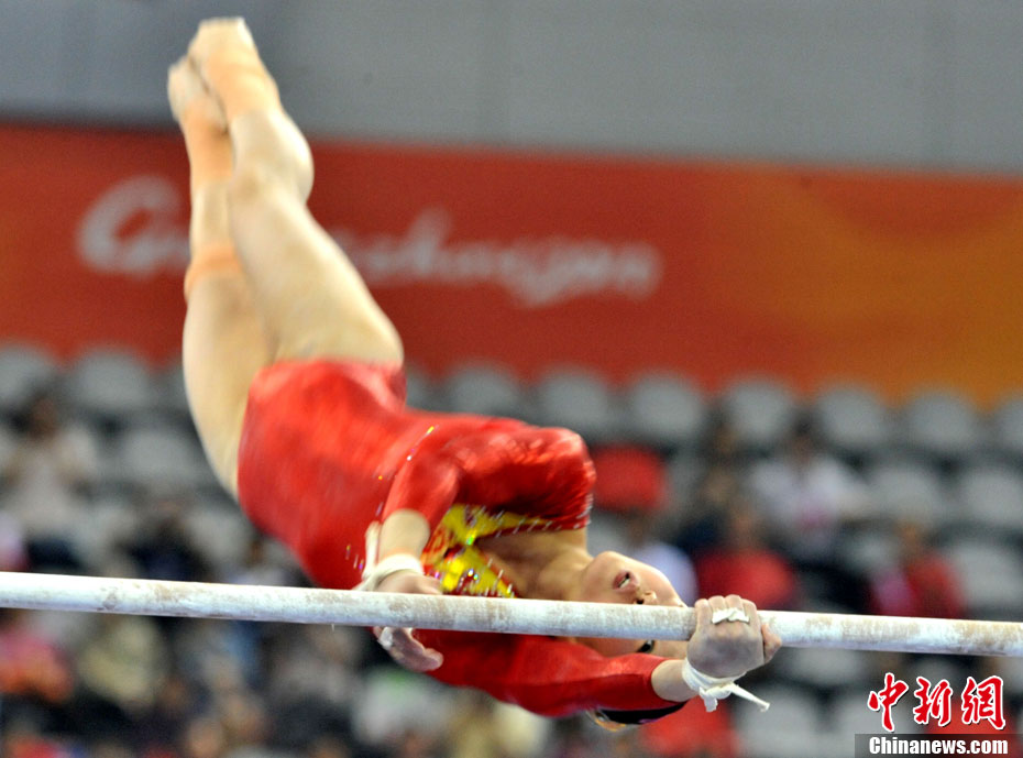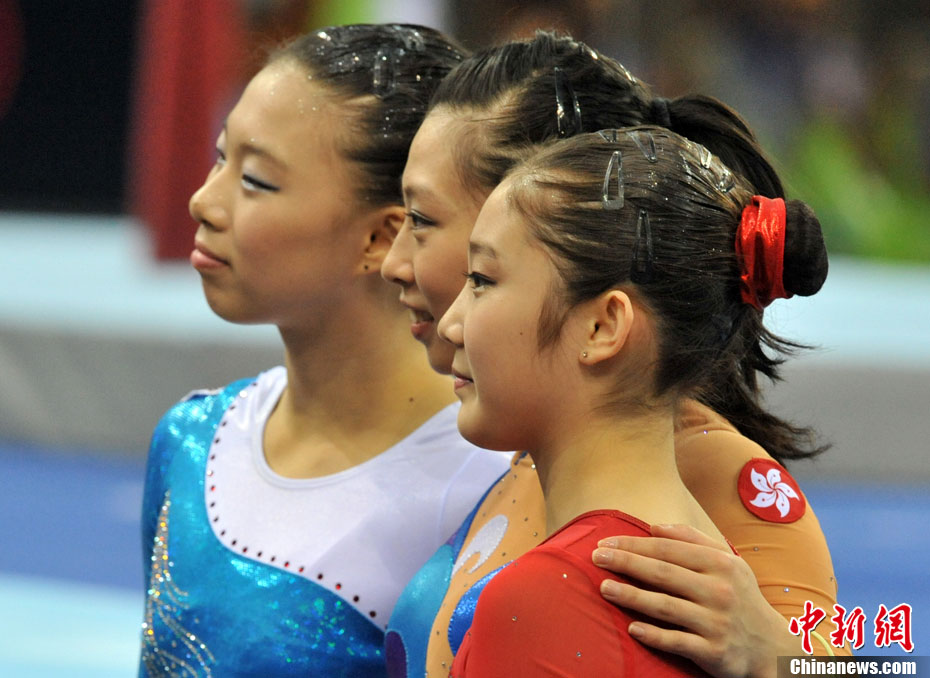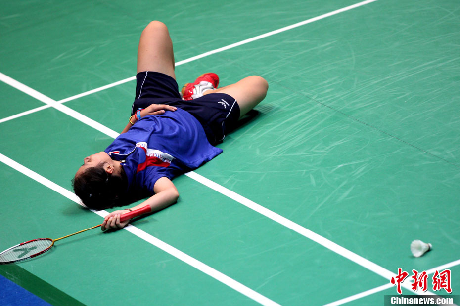 11月15日,中國女子羽毛球隊以3比0戰(zhàn)勝泰國隊奪得廣州亞運會女子團體冠軍。頒獎儀式上,李永波客串“攝影記者”記錄隊員歡慶一刻。 中新社記者 湯彥俊 攝