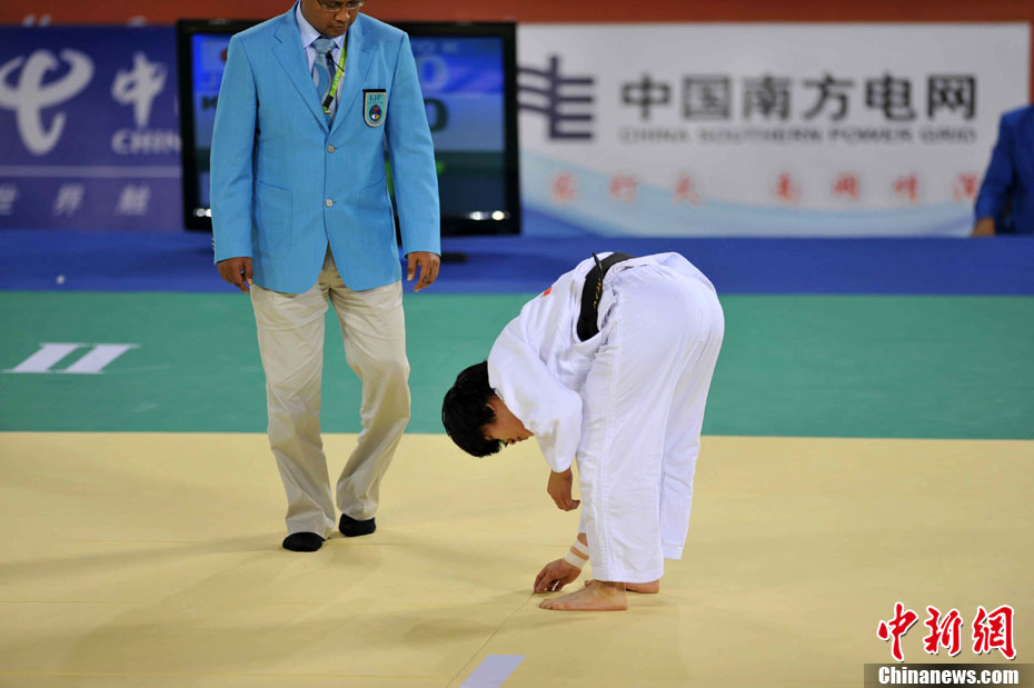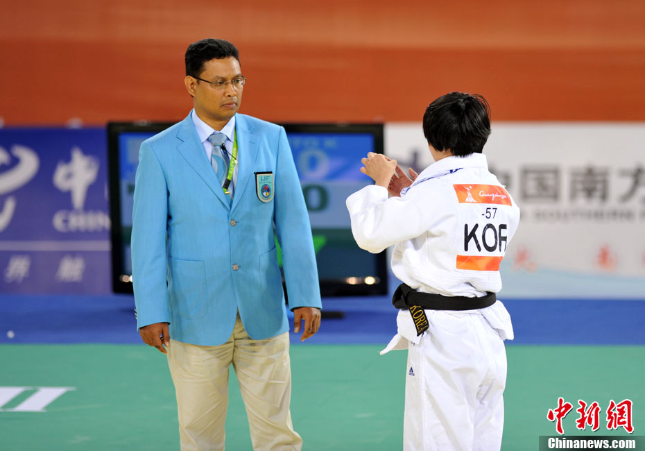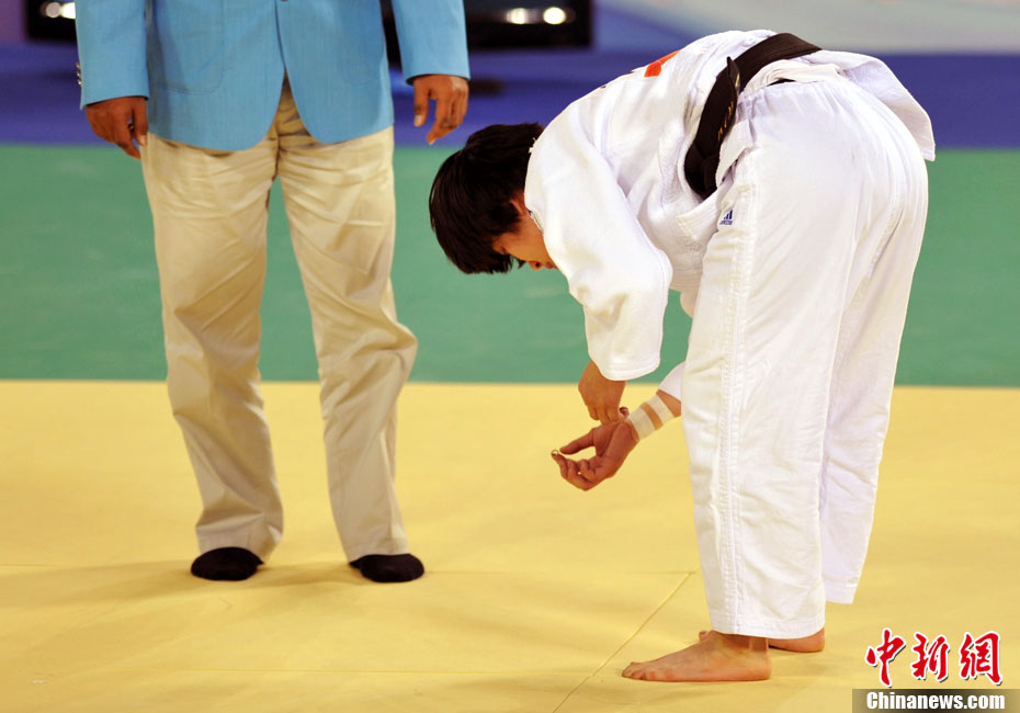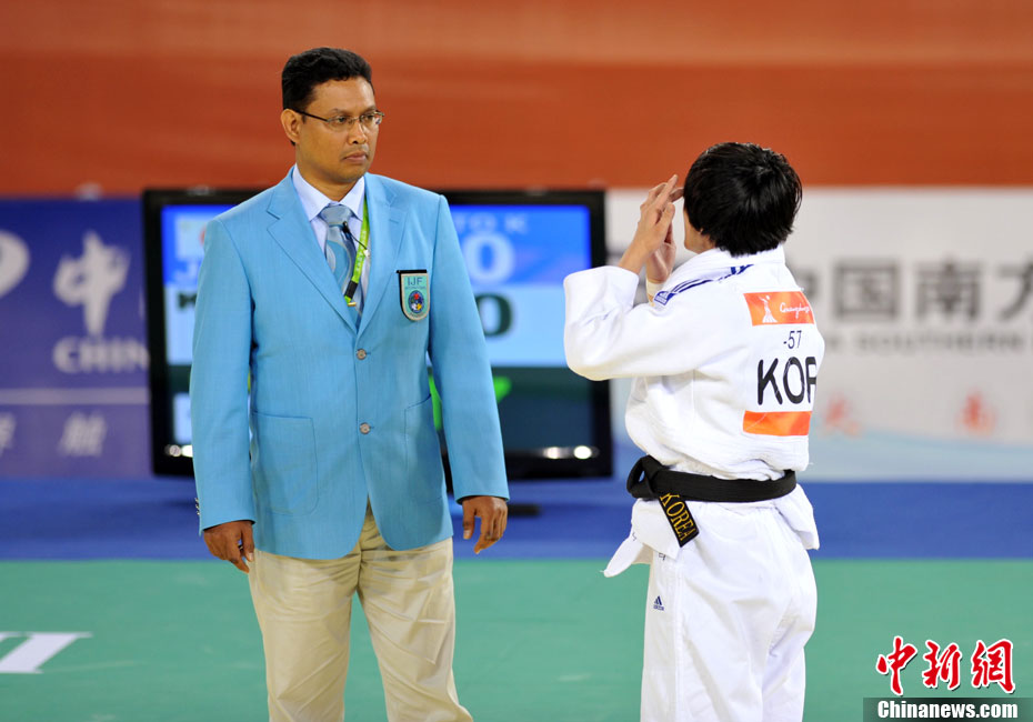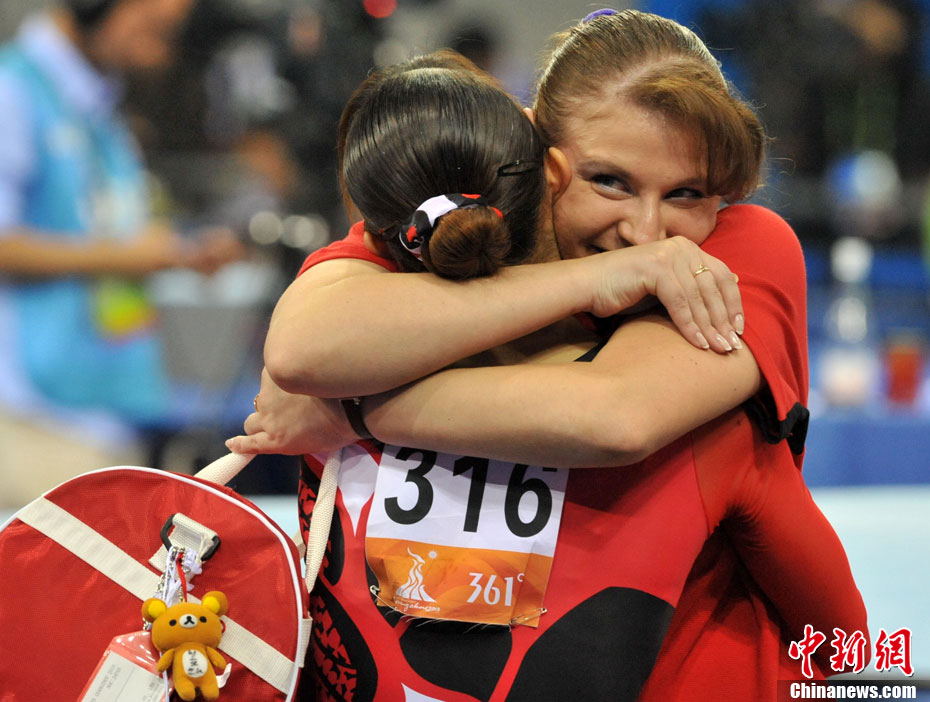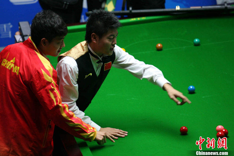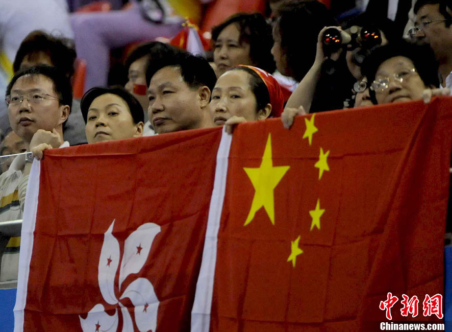 11月15日,中國女子羽毛球隊以3比0戰(zhàn)勝泰國隊奪得廣州亞運會女子團體冠軍。頒獎儀式上,李永波客串“攝影記者”記錄隊員歡慶一刻。 中新社記者 湯彥俊 攝