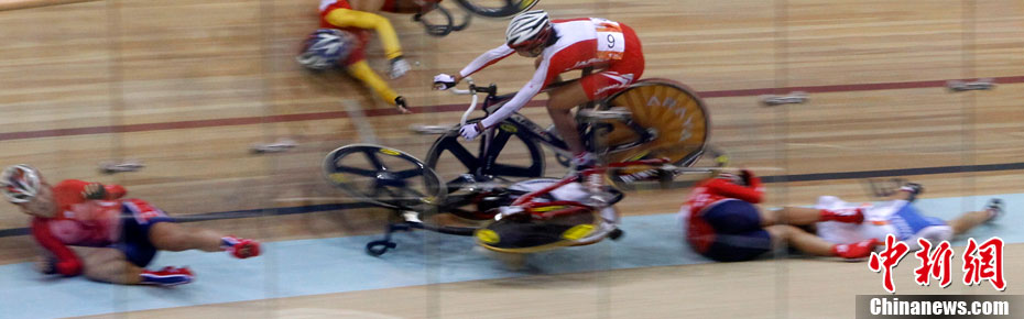 11月16日,廣州亞運(yùn)會(huì)自行車比賽進(jìn)入第四天,在女子積分賽比賽的最后沖刺階段,突發(fā)嚴(yán)重車禍,七位比賽選手均翻車倒地被送往醫(yī)院救治。其中中國(guó)的湯科蓉傷勢(shì)最為嚴(yán)重,被送往醫(yī)院急救。中新社記者 趙振清 攝