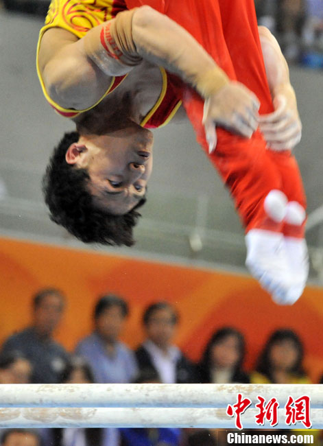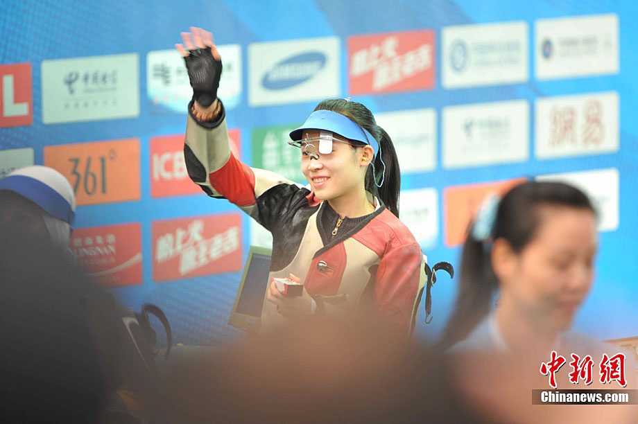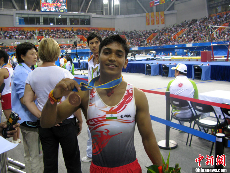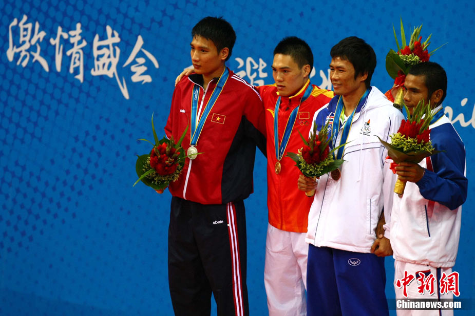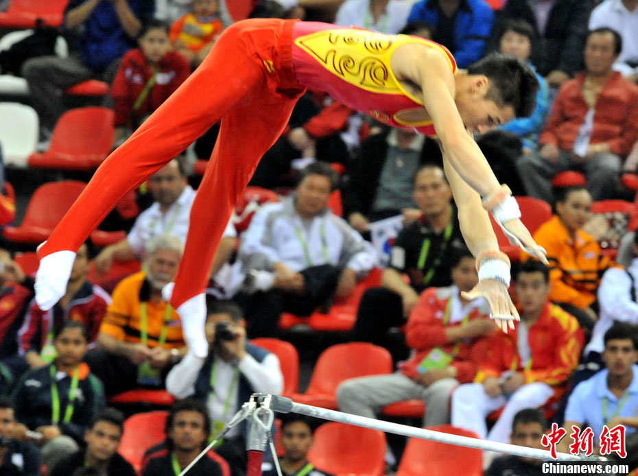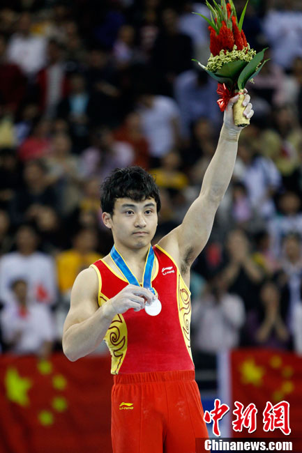 11月17日下午,第16屆廣州亞運(yùn)會(huì)男子10米移動(dòng)靶混合速金牌得主朝鮮運(yùn)動(dòng)員樸明元淚灑領(lǐng)獎(jiǎng)臺。中新社記者 柯小軍 攝