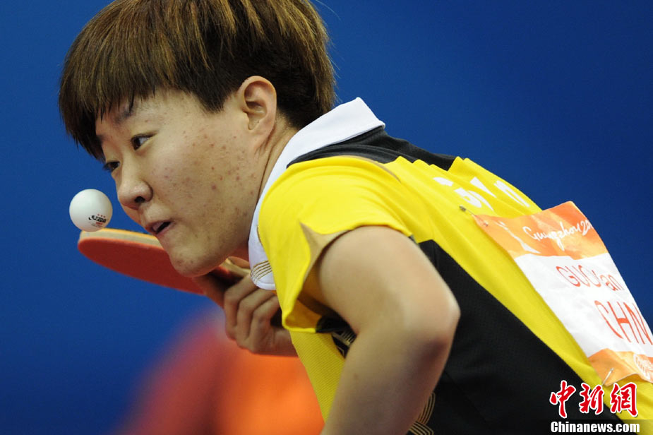 第16屆亞運會正在廣州酣戰(zhàn),精彩亞運體現(xiàn)在賽場內(nèi)外。中國乒乓軍團一舉拿下亞運女子團體、男子團體金牌,賽場上留下了乒乓健兒的運動風采---乒乓球的魅力。圖為乒乓名將馬琳賽場風采。中新社記者 陳文 攝