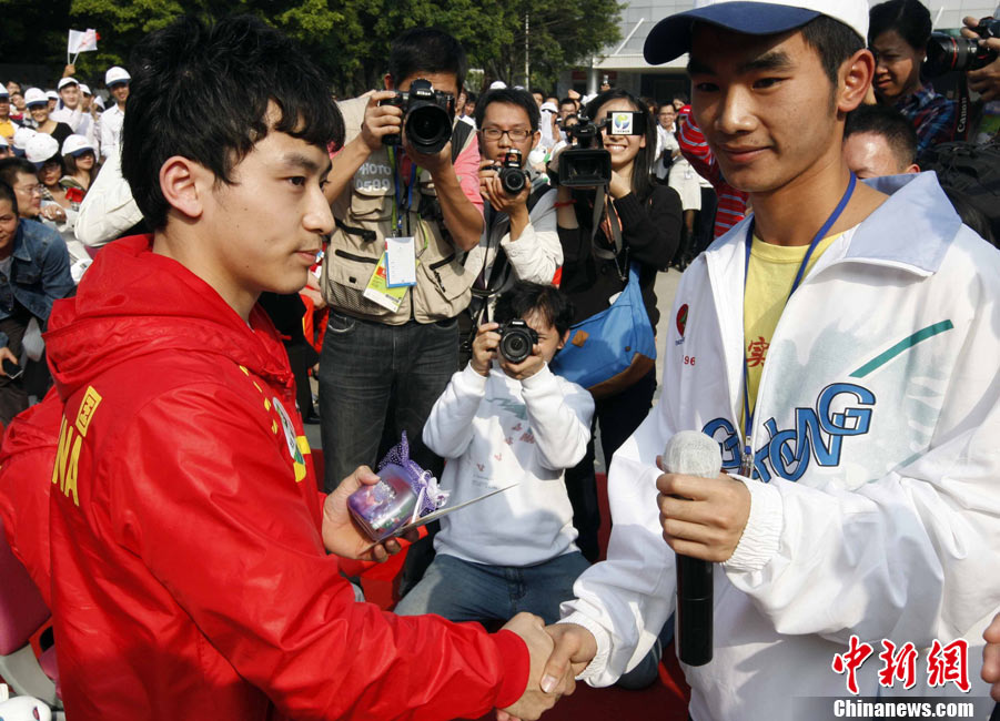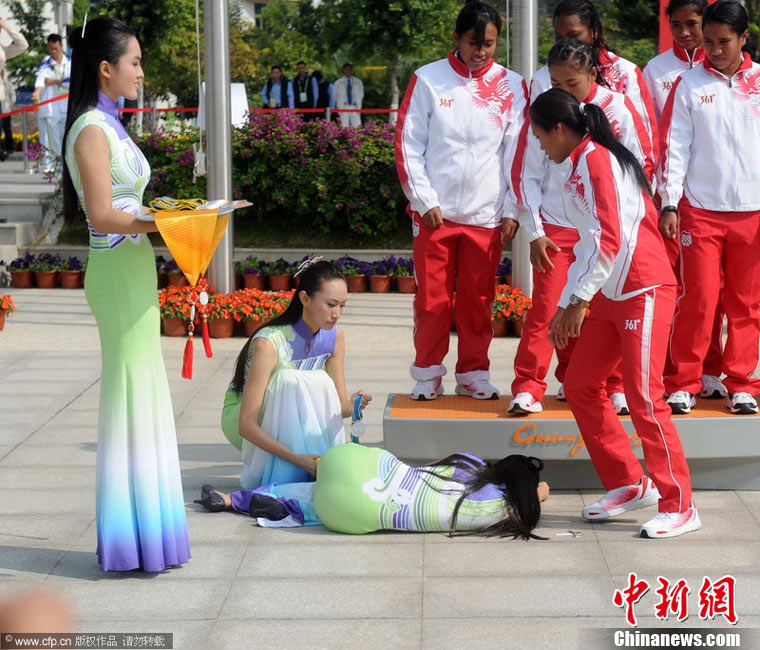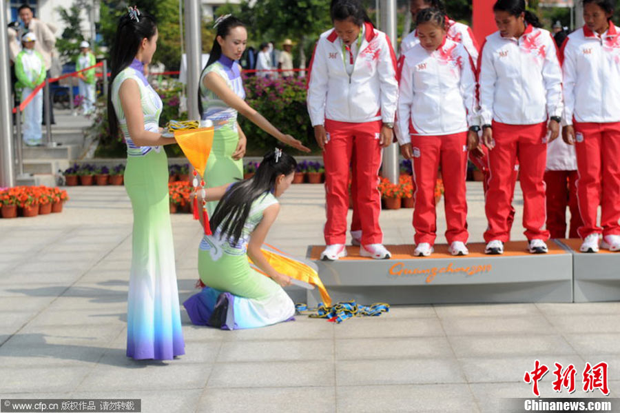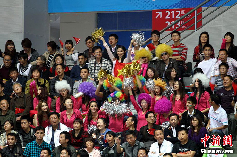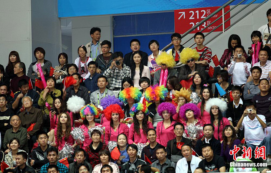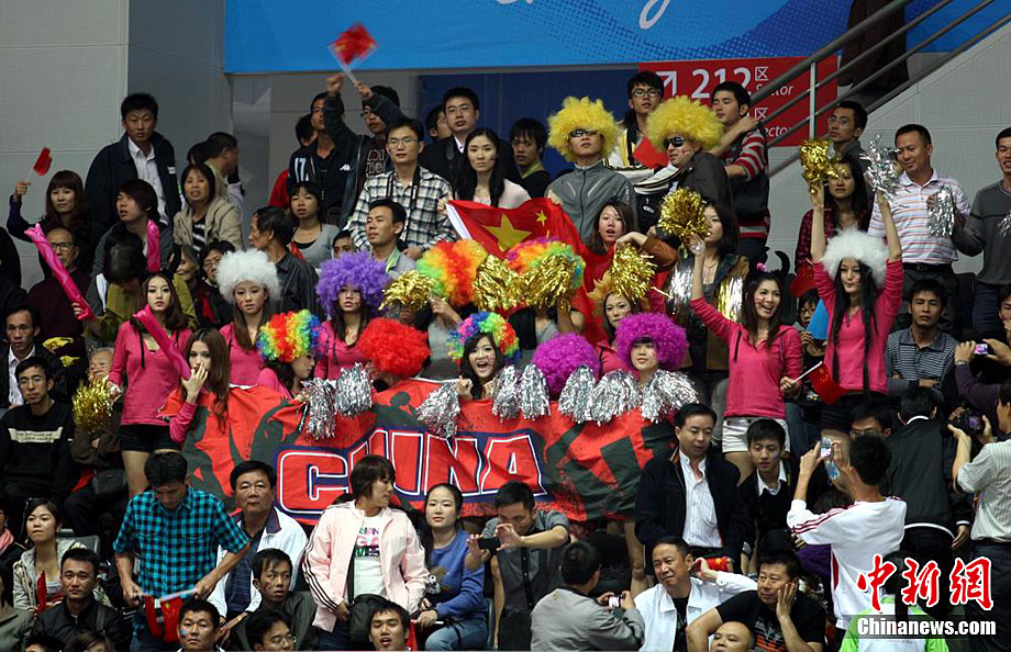 11月17日,廣州亞運(yùn)會(huì)男排小組賽迎來(lái)最后一天的較量。在當(dāng)晚進(jìn)行的中國(guó)男排對(duì)陣泰國(guó)男排的比賽中,看臺(tái)上一群美女觀眾令賽場(chǎng)氣氛大為火爆。中新社記者 鄧霞 攝