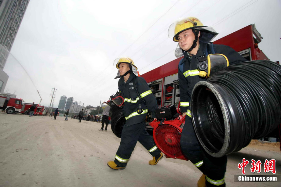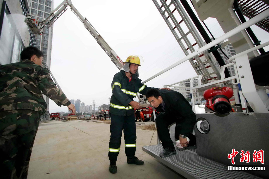 中新網(wǎng)福州11月18日電 (朱曉航 黃綠榮)為吸取“11.15”上海市靜安區(qū)膠州路在建高層教師公寓樓特大火災(zāi)事故教訓(xùn),福州18日在該市臺江區(qū)舉行了一場大型滅火救援演練。
