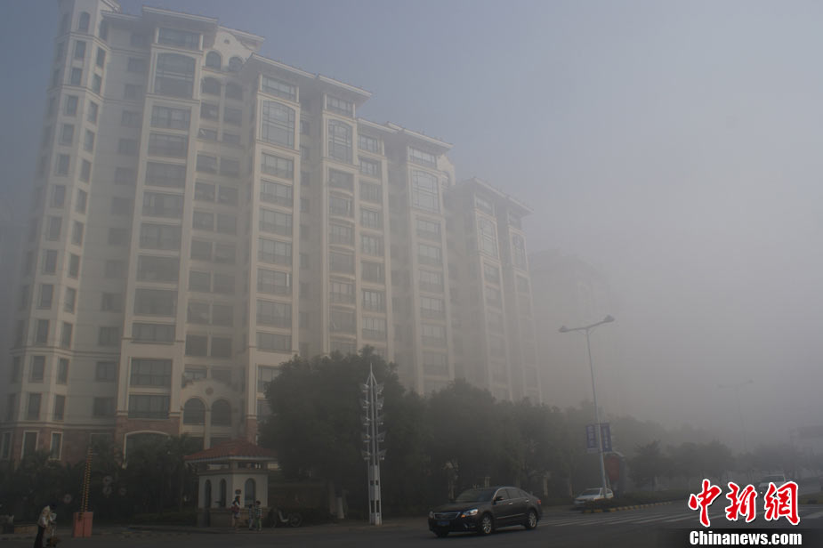 11月20日,遼寧大連市甘井子區(qū)輕軌泉水站附近地區(qū)被大霧籠罩,城市建筑若隱若現(xiàn)。當日,大連市能見度不足500米。上午8時20分,大連市氣象臺將此前發(fā)布的大霧黃色預警信號升級為紅色預警信號。 中新社發(fā) 劉德斌 攝 圖片來源:CNSPHOTO