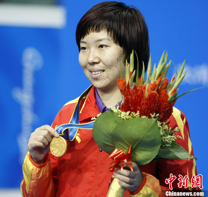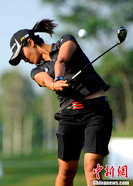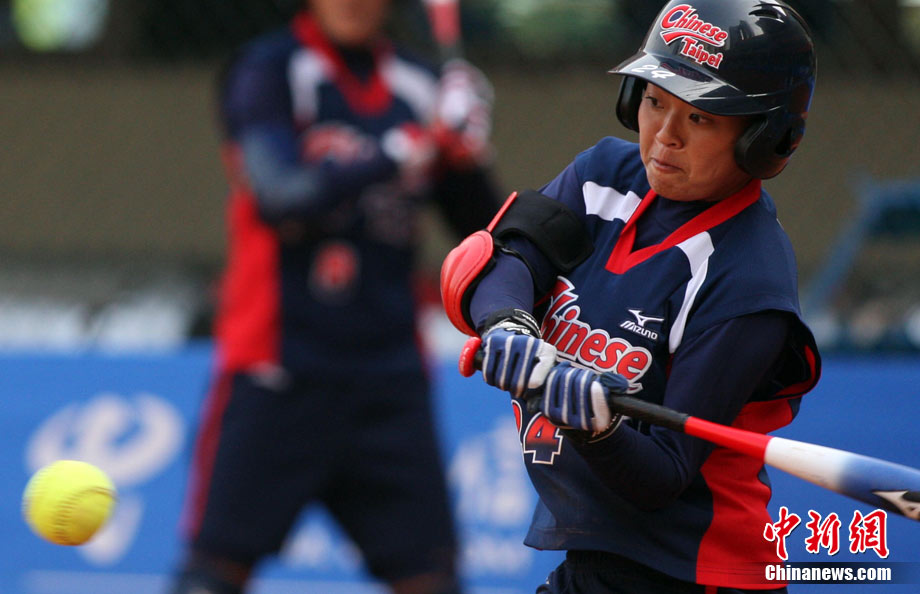 11月20日,廣州亞運(yùn)會(huì)壘球預(yù)賽第4場(chǎng),中華臺(tái)北隊(duì)以9比2戰(zhàn)勝菲律賓隊(duì)。中華臺(tái)北隊(duì)員林佩君揮棒擊球。 中新社記者 湯彥俊 攝