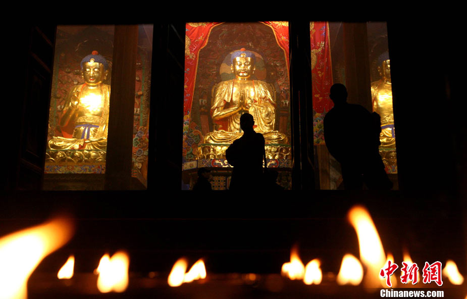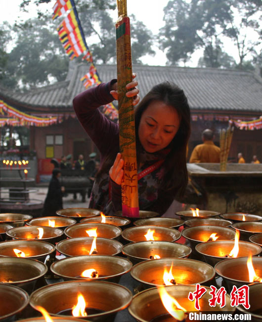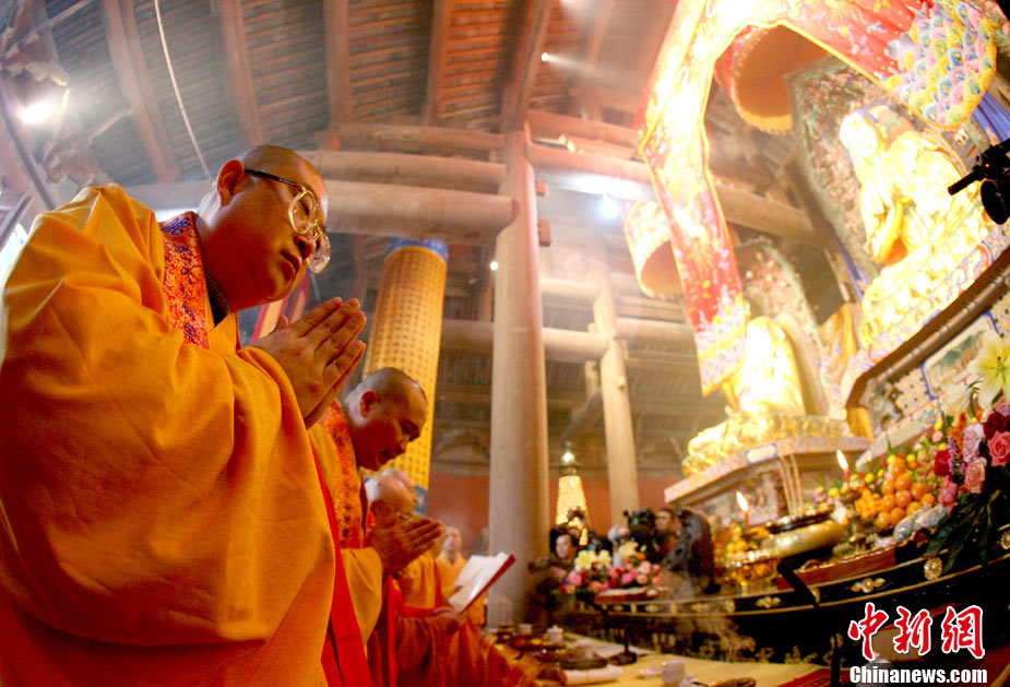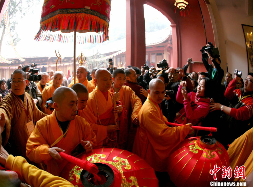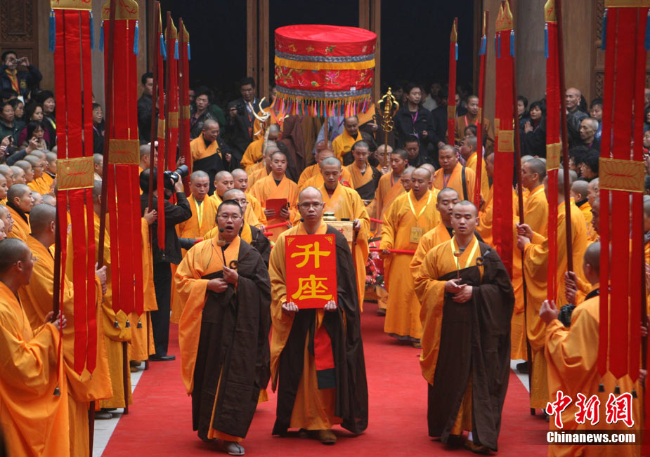 11月21日,“樂山凌云寺重光暨照觀法師榮膺凌云寺方丈、烏尤寺晉院升座法會(huì)”在四川樂山凌云寺、烏尤寺舉行。這標(biāo)志著有著1400年的千年名寺凌云寺經(jīng)歷“5·12” 汶川大地震的劫難后再現(xiàn)昔日光彩。圖為樂山凌云寺重光法會(huì)現(xiàn)場(chǎng)。中新社發(fā) 劉忠俊 攝
