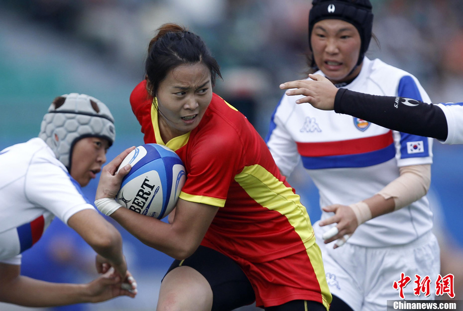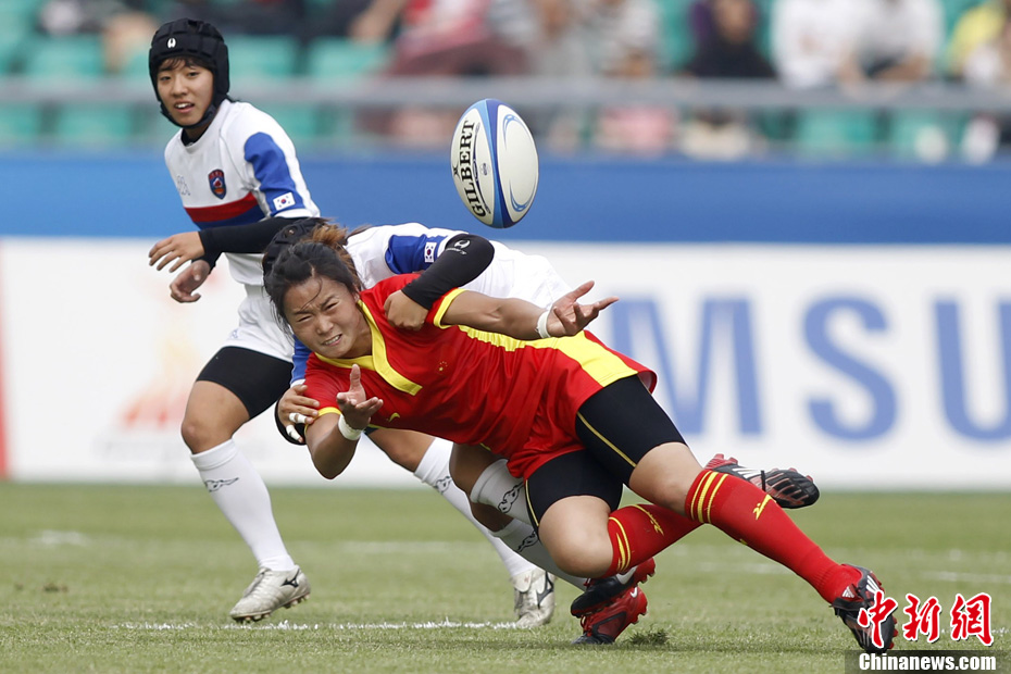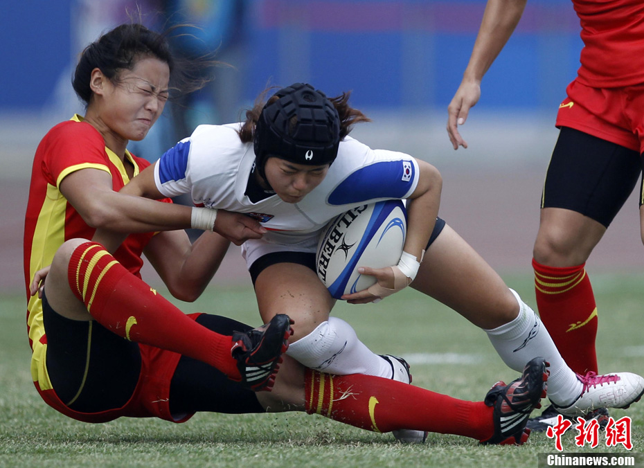 亞運(yùn)會橄欖球中國女隊(duì)51比0大勝韓國女隊(duì)