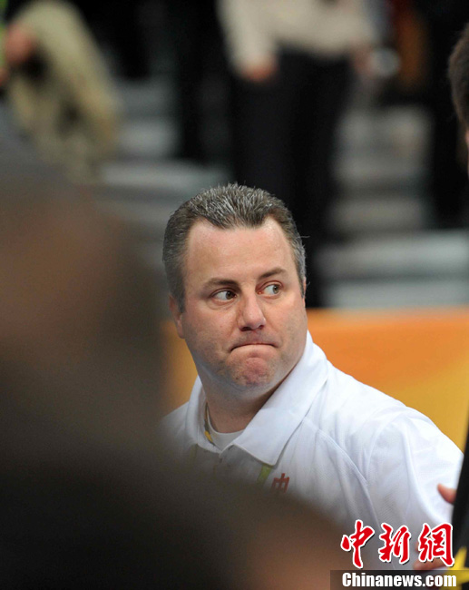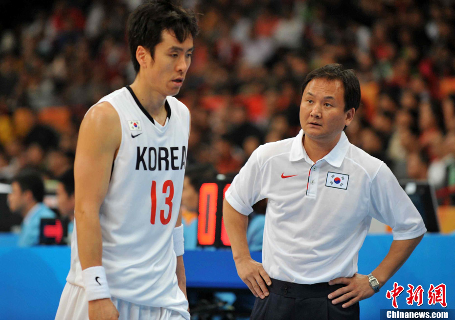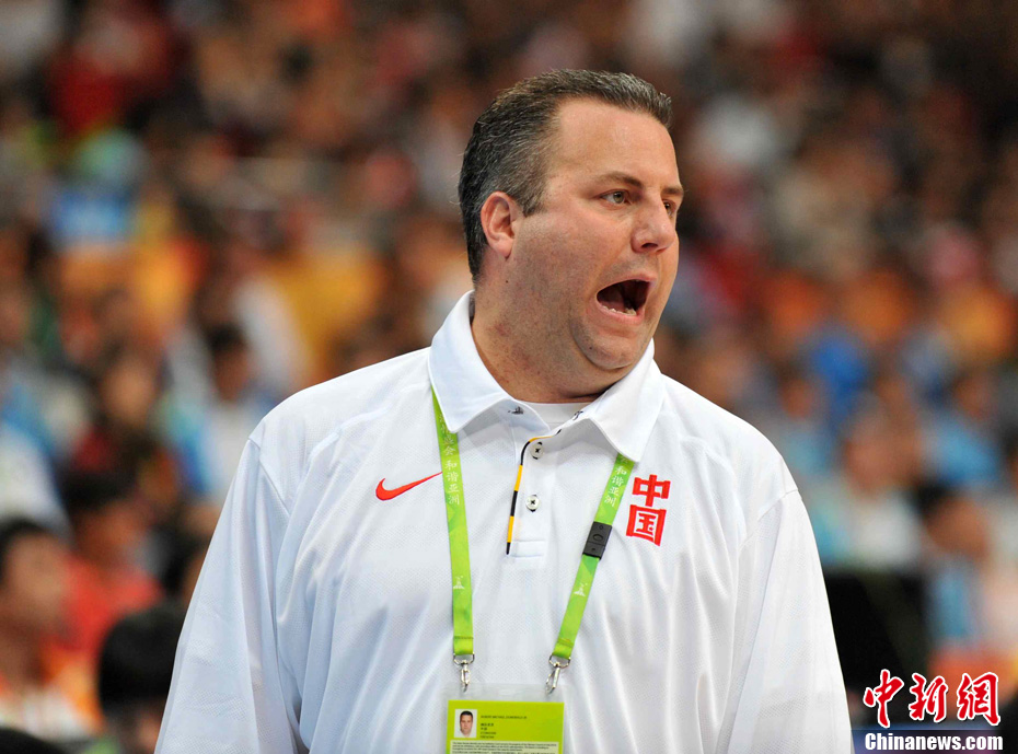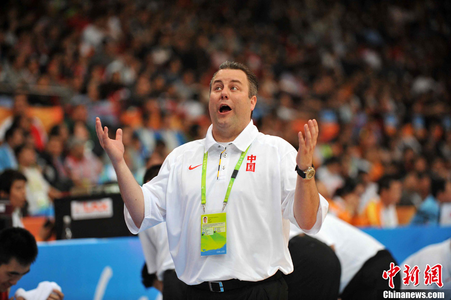 11月21日晚,中國男籃以76:66戰(zhàn)勝韓國男籃,比賽中主帥鄧華德在場邊激情執(zhí)教。中新社記者 柯小軍 攝