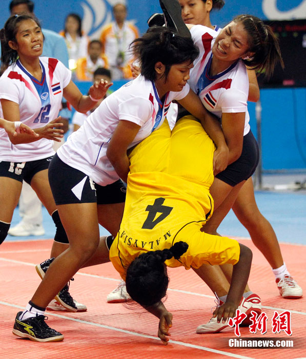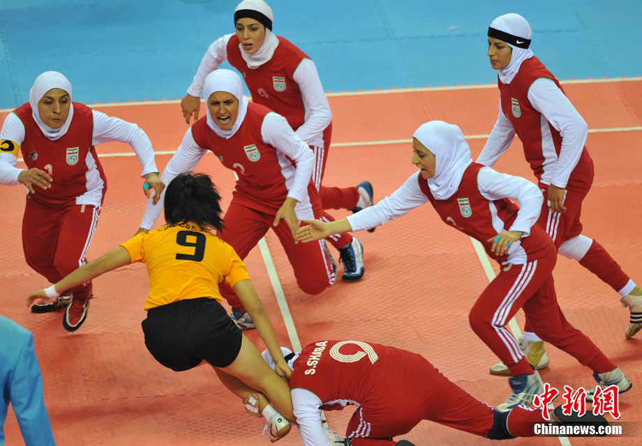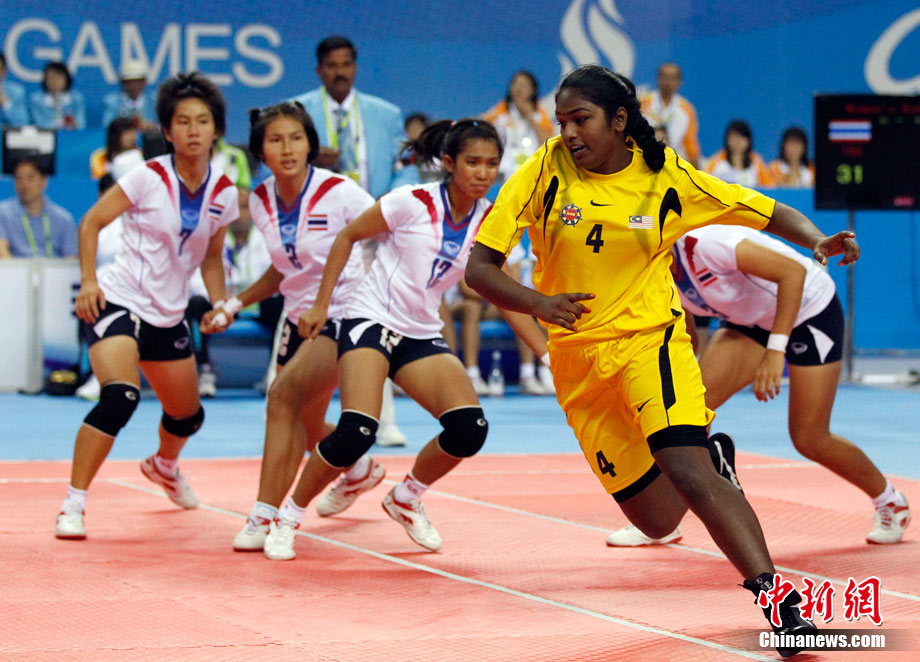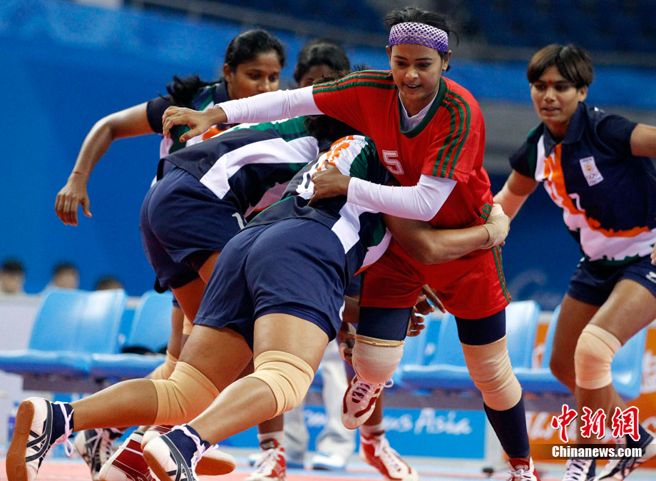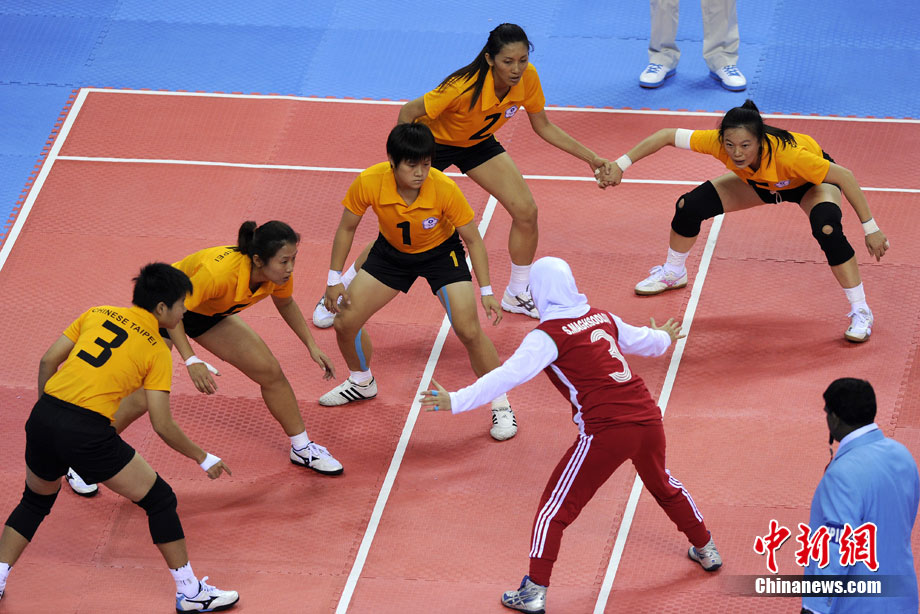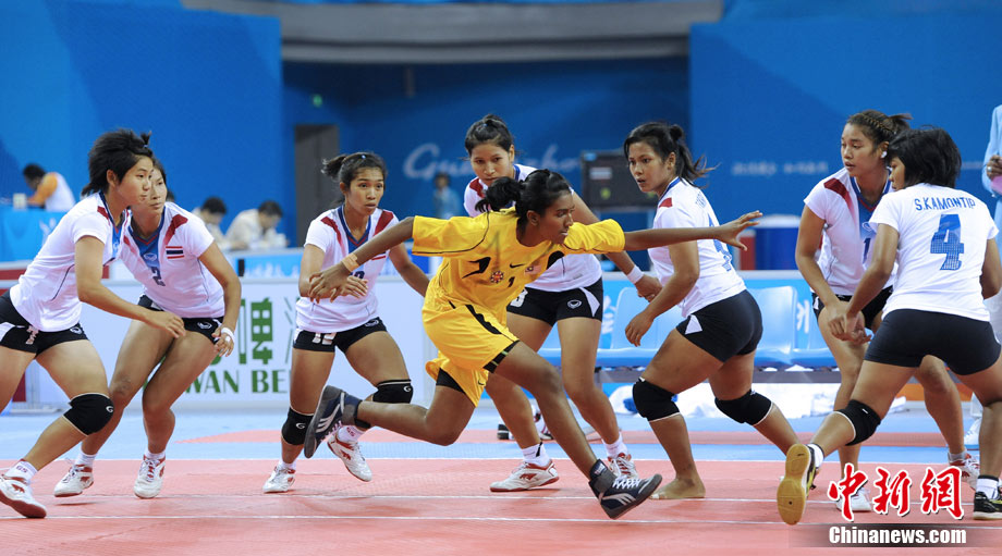 下圖:2010廣州亞運會女子卡巴迪比賽現(xiàn)場。