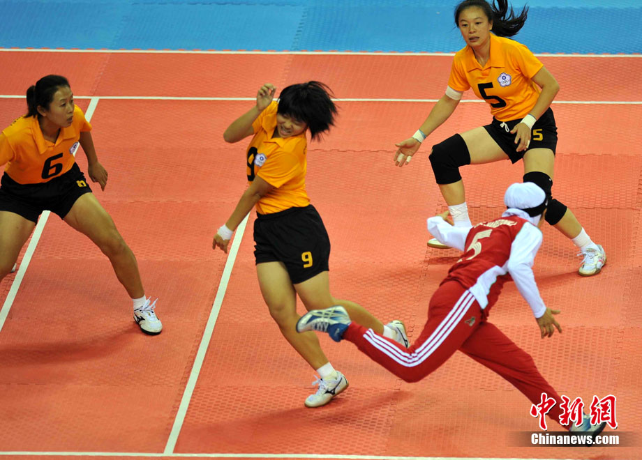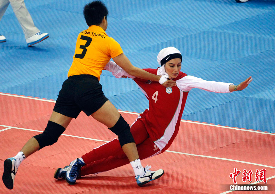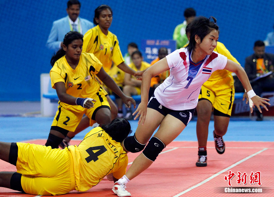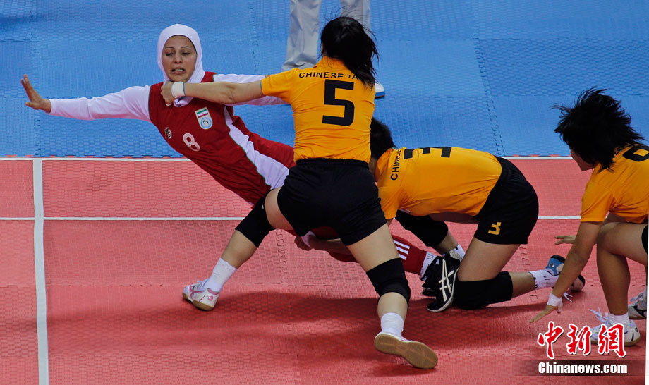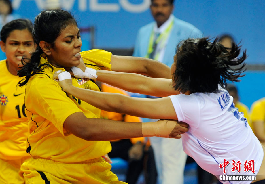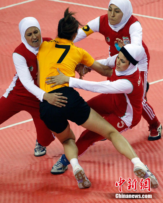 下圖:2010廣州亞運會女子卡巴迪比賽現(xiàn)場。