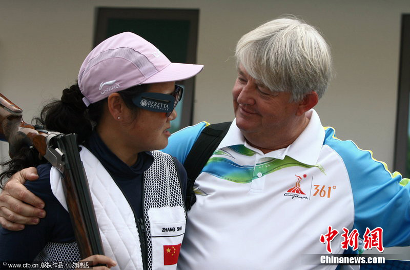 2010年11月23日,廣州亞運(yùn)會(huì)射擊女子雙向飛碟賽場(chǎng),由張山、魏寧、魏萌組成的中國(guó)隊(duì),以較大的優(yōu)勢(shì)奪冠?钢袄蠘尅鄙详嚨膹埳,是唯一參加過(guò)在中國(guó)舉辦的兩屆亞運(yùn)會(huì)的運(yùn)動(dòng)員。她甚至放言要參加倫敦奧運(yùn)會(huì)。圖片來(lái)源:cfp視覺(jué)中國(guó)