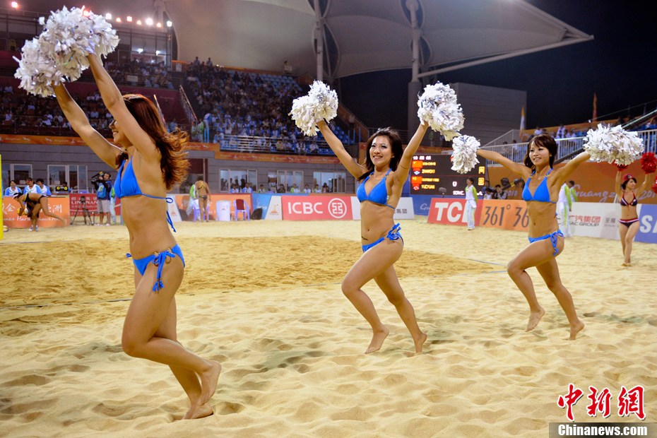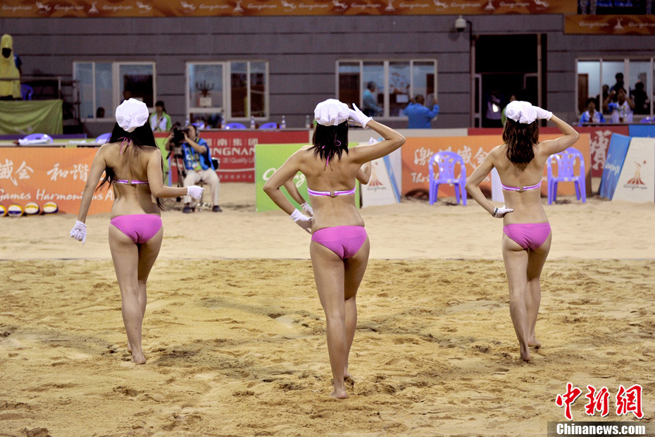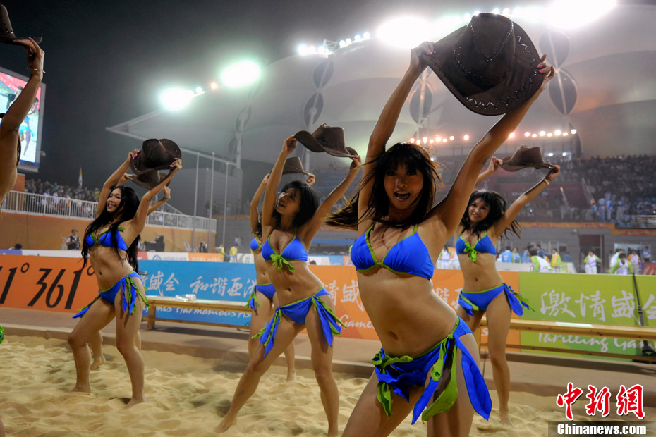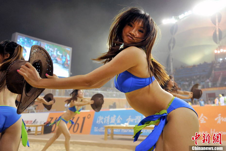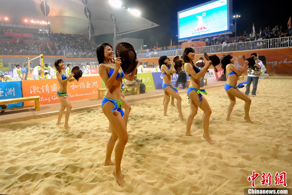 11月24日晚,廣州亞運會沙排比賽完美落幕。青春時尚的沙排寶貝給人留下深刻印象,她們用熱情點燃現(xiàn)場觀眾的激情,水手裝、海軍帽、藍色海洋比基尼加上性感熱舞謀殺菲林無數(shù),令人血脈噴張!讓我們再一次重溫“沙排寶貝”的各種性感造型。中新網(wǎng)記者 金碩 攝