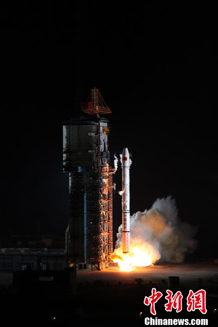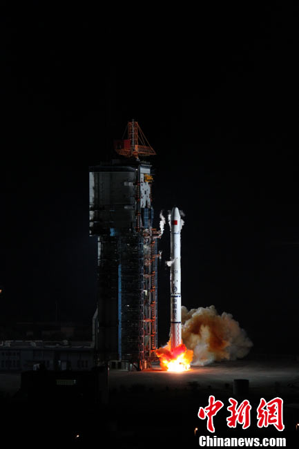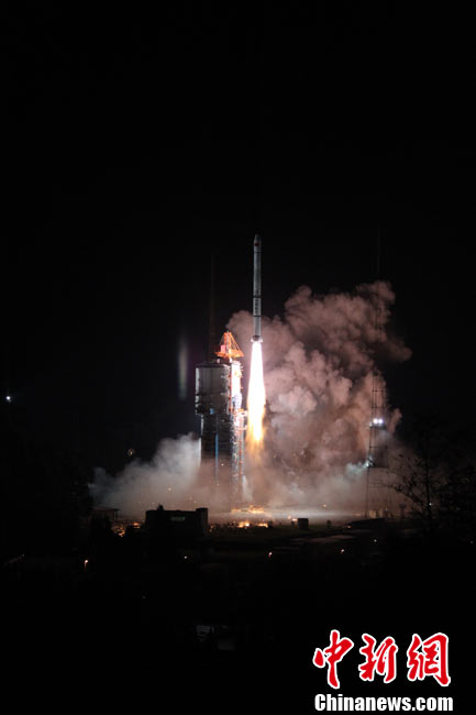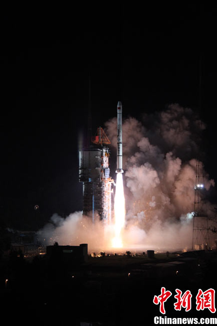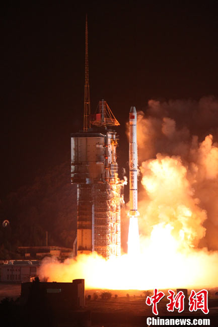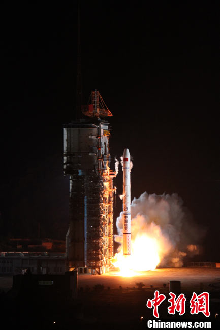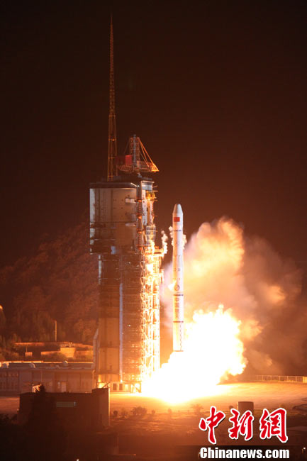 北京時(shí)間25日0時(shí)9分,中國在西昌衛(wèi)星發(fā)射中心用“長征三號(hào)甲”運(yùn)載火箭,將“中星-20A”通信廣播衛(wèi)星成功送入太空預(yù)定軌道。中新網(wǎng)發(fā) 王玉磊 攝