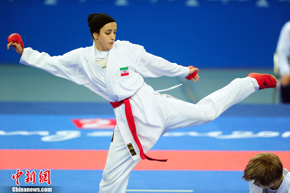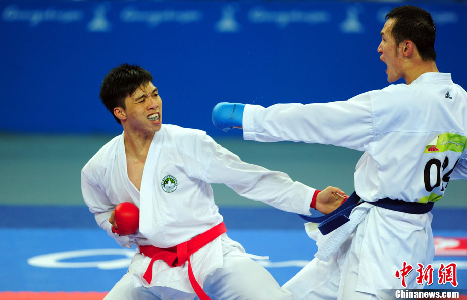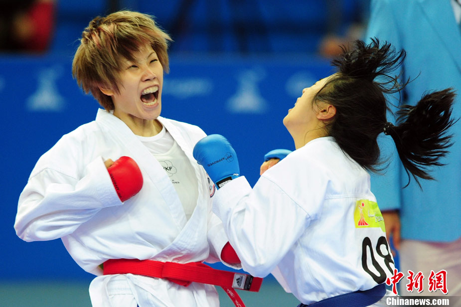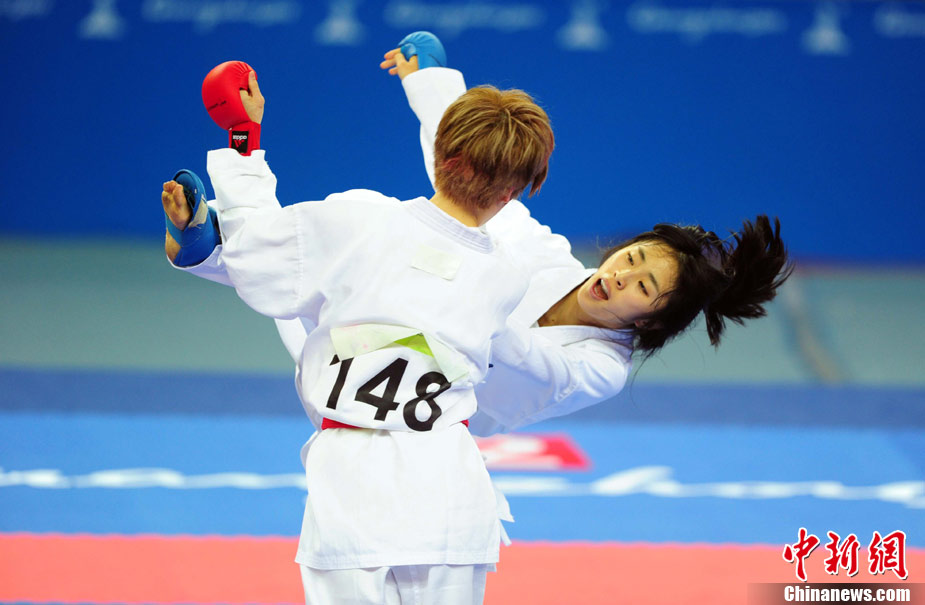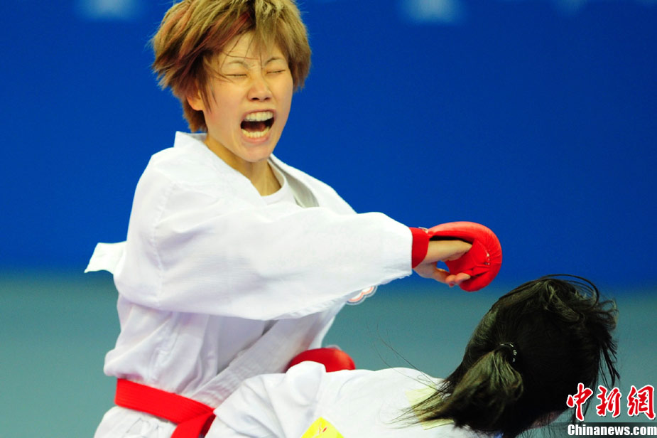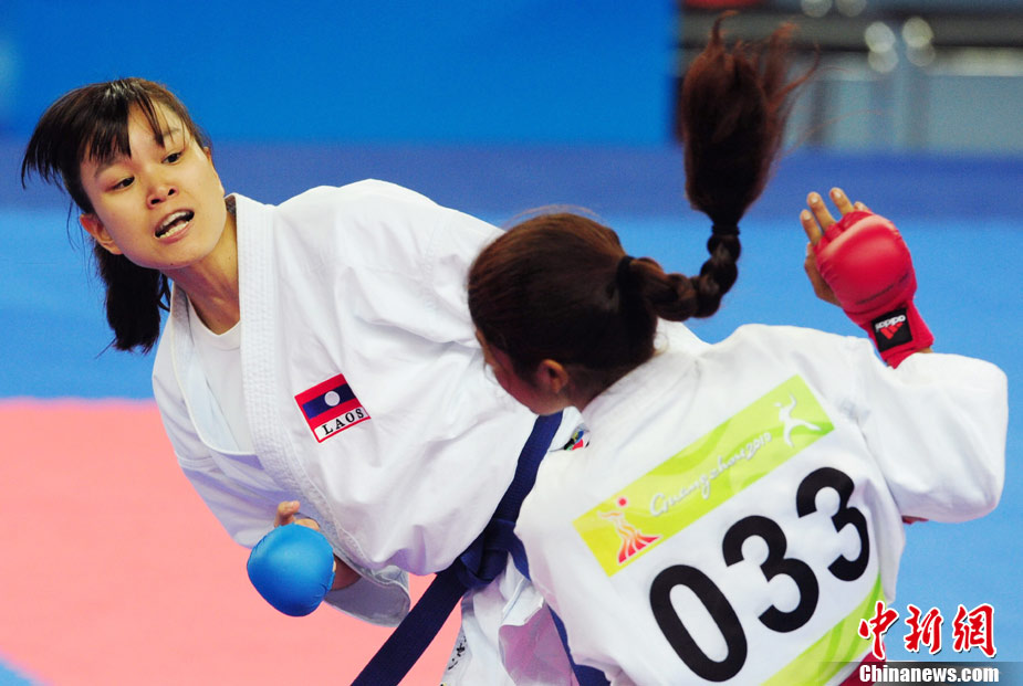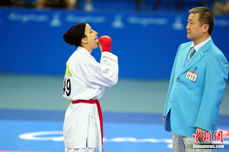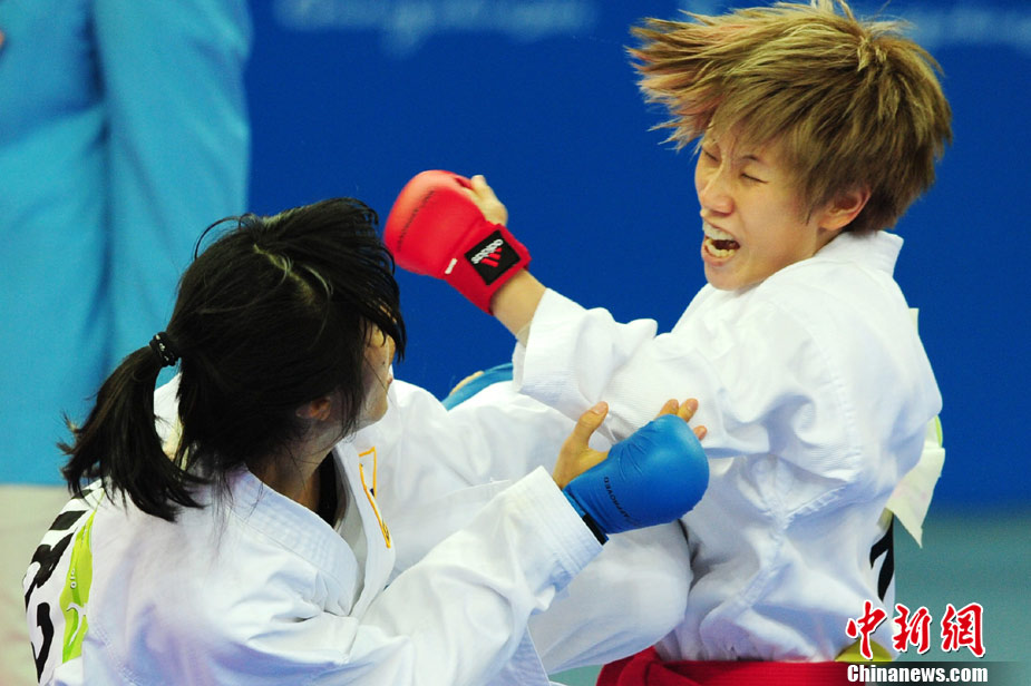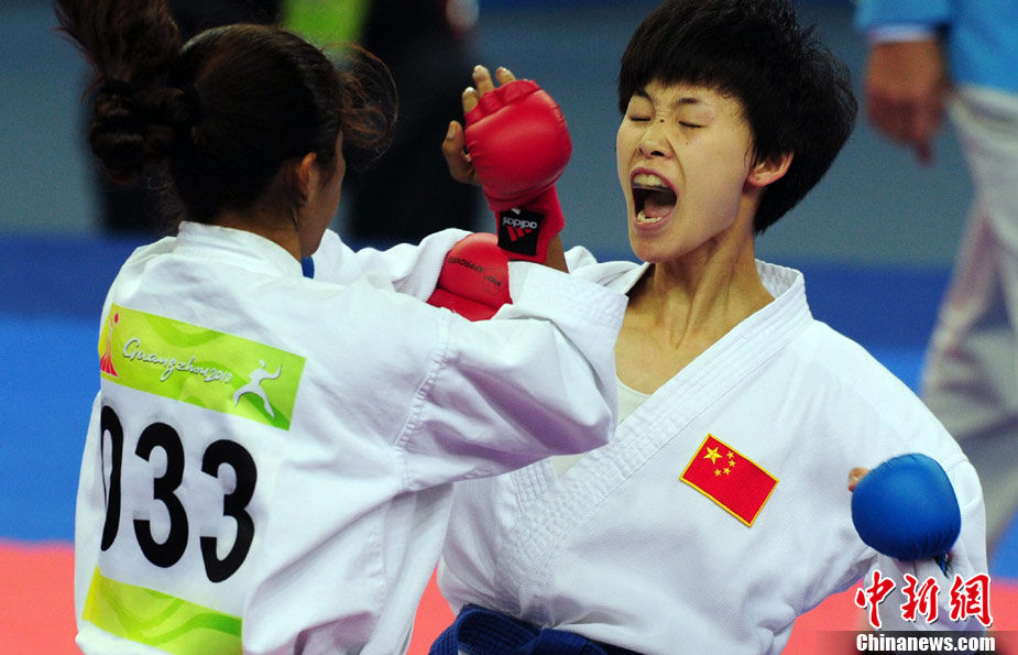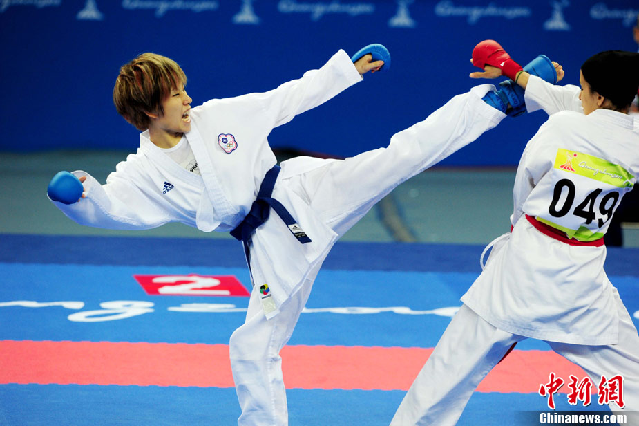 11月24日,在第16屆廣州亞運會空手道項目比賽中,來自亞洲伊朗、印度尼西亞、日本、泰國、韓國、菲律賓、越南、中國、中國澳門、中華臺北等女子空手道“霸王花”爭摘亞運桂冠。 中新社記者 陳文 攝