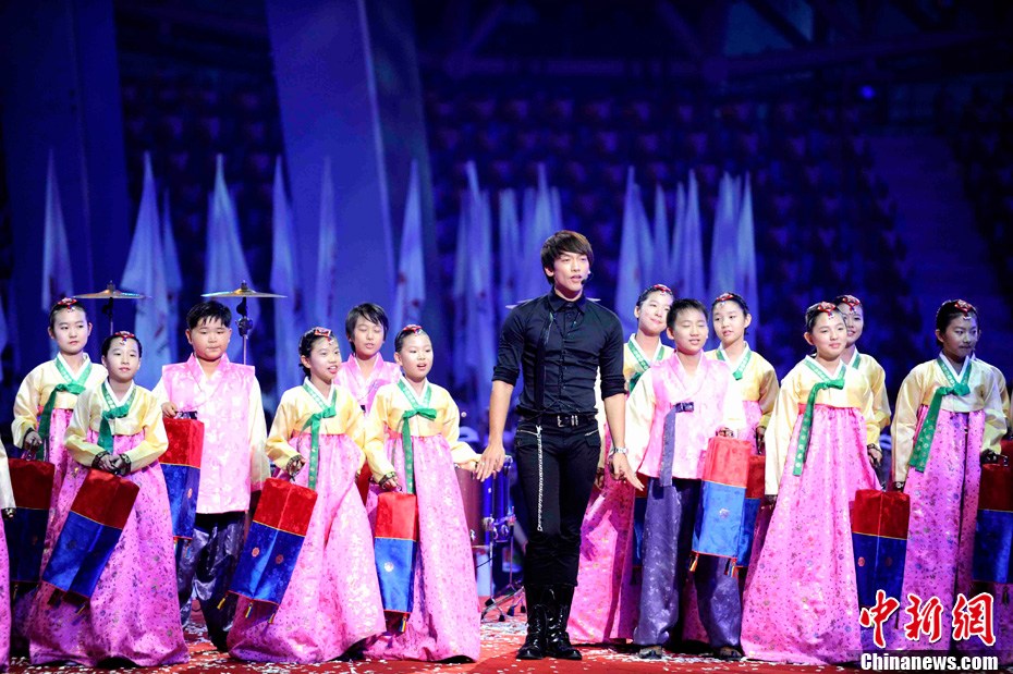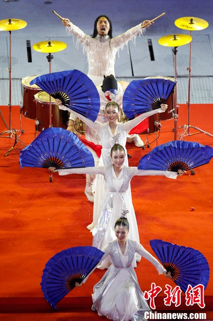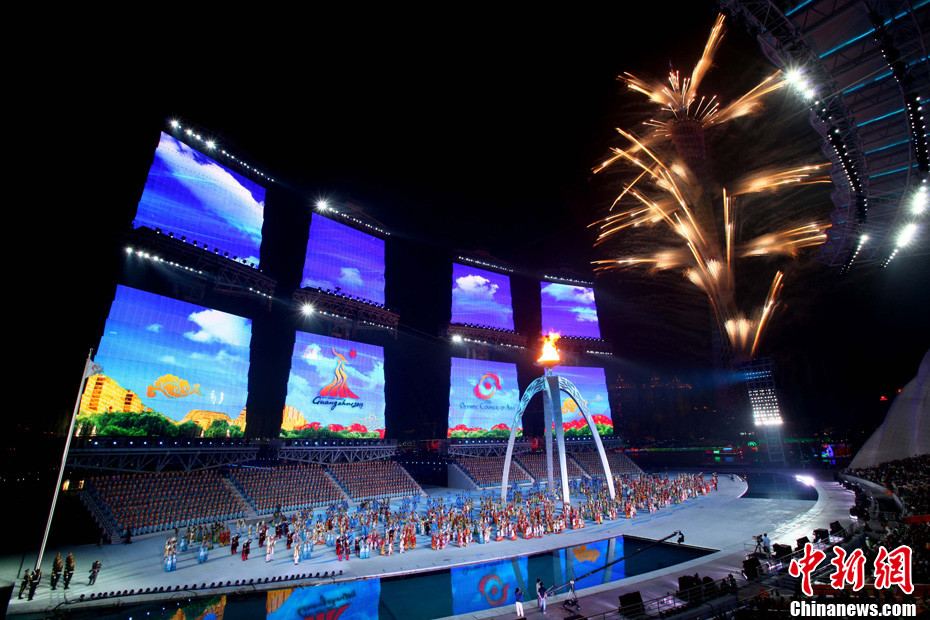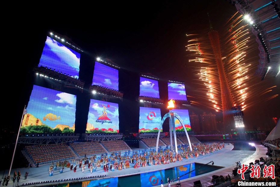 11月27日,第16屆亞運會在廣州海心沙島舉行閉幕式。圖為閉幕式上的演出。