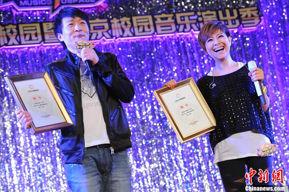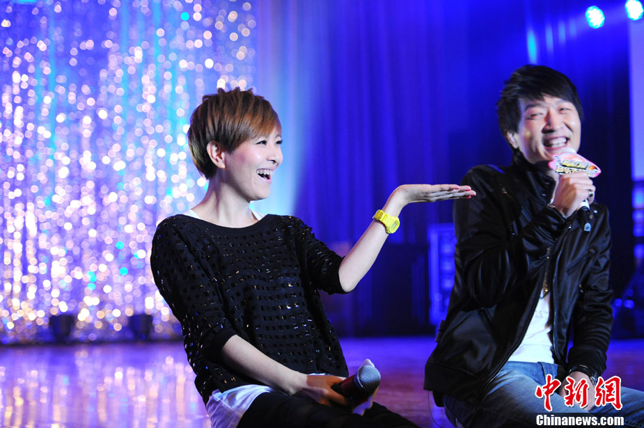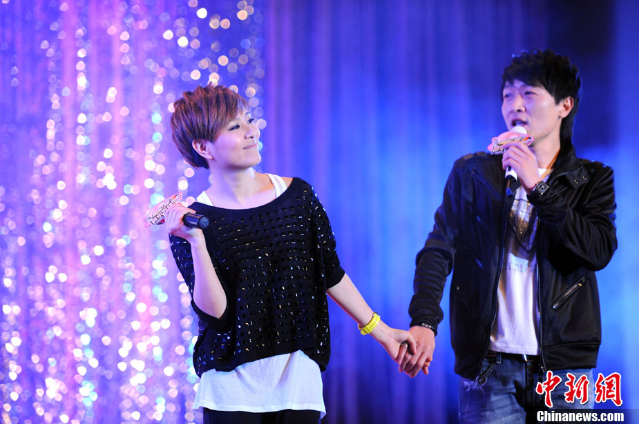 11月29日晚,2010公益進(jìn)校園暨北京校園音樂演出季活動(dòng)之李慧珍&樊凡主題歌友會(huì)在北京化工大學(xué)舉行,兩位歌手為歌迷們獻(xiàn)上了一首首經(jīng)典的曲目。因演唱熱播電視劇《蝸居》主題曲爆紅的樊凡還親自譜曲了情歌《只需要一首歌》,并與李慧珍牽手甜蜜合唱,F(xiàn)場(chǎng),積極投身愛心公益事業(yè)的樊凡和李慧珍還為貧困學(xué)生頒發(fā)了“媽媽的年夜飯”善款,并雙雙被北京婦女兒童基金會(huì)聘為“愛心大使”。圖為李慧珍、樊凡牽手獻(xiàn)唱。中新社記者 李學(xué)仕 攝