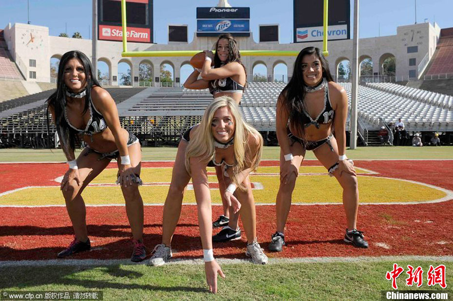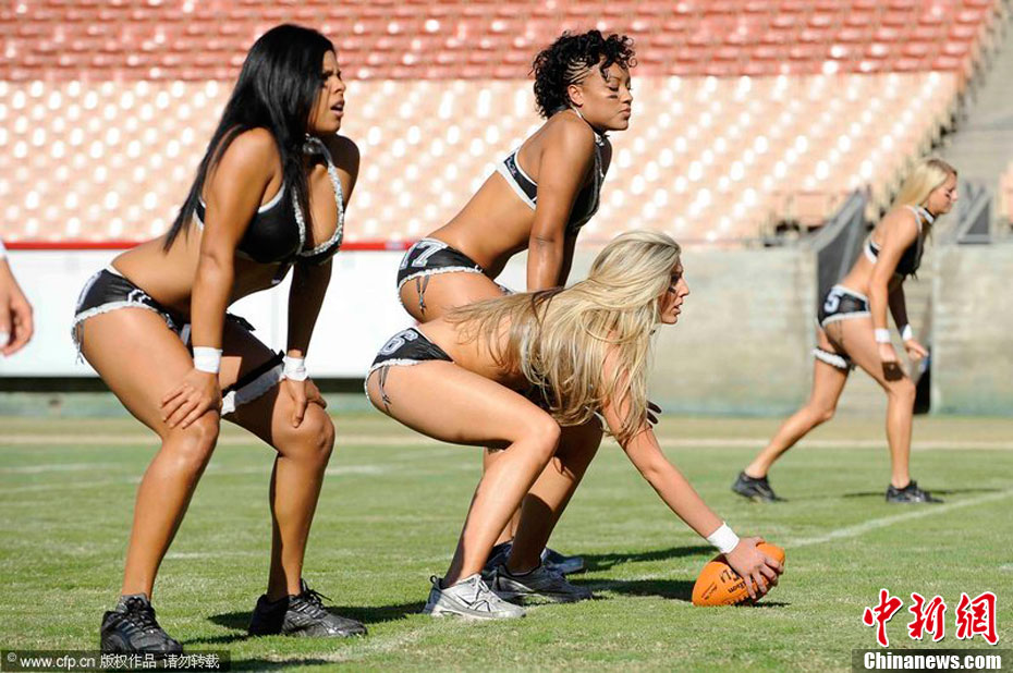 洛杉磯女子內(nèi)衣橄欖球隊員展示性感身段